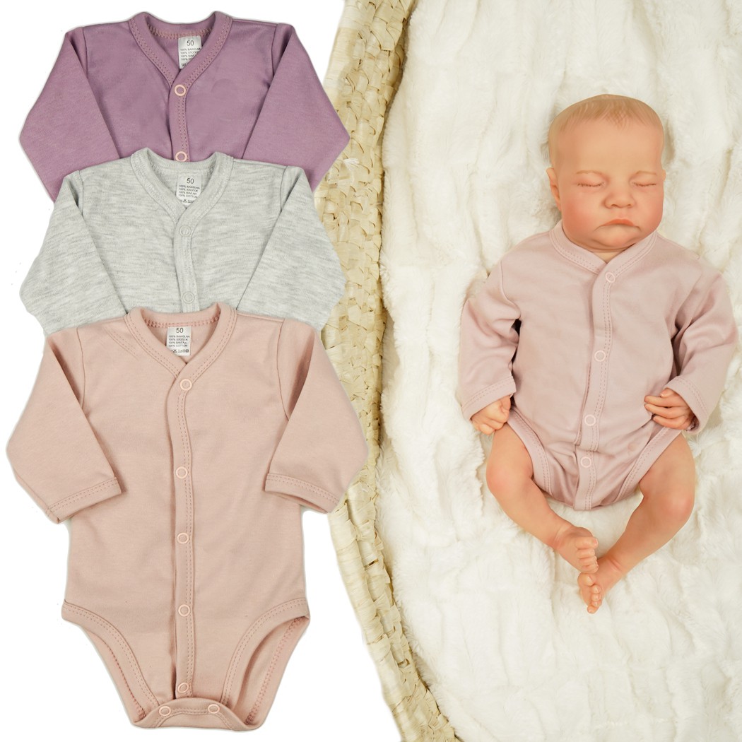 3pak BODY rozpinane wrzos róż szary długi rękaw