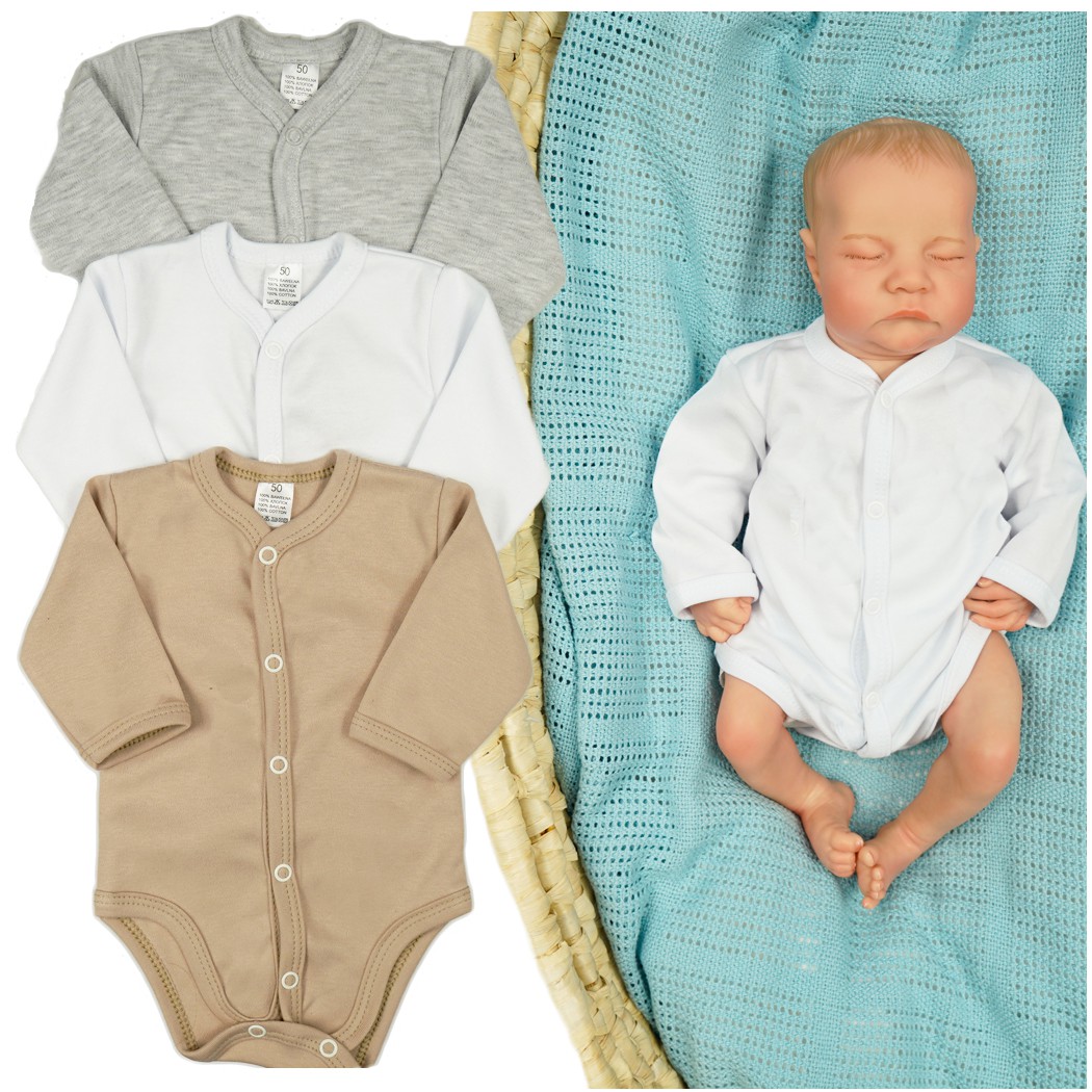3pak BODY rozpinane WCZEŚNIAK białe beżowe szare długi rękaw
