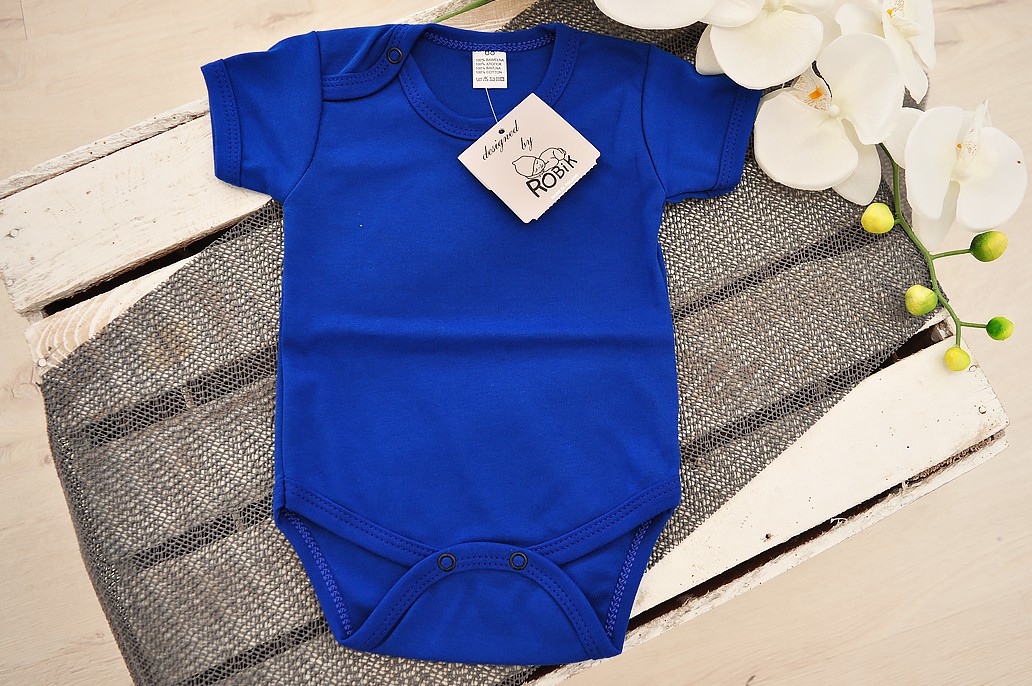 Dziecięce body w kolorze chabrowym.