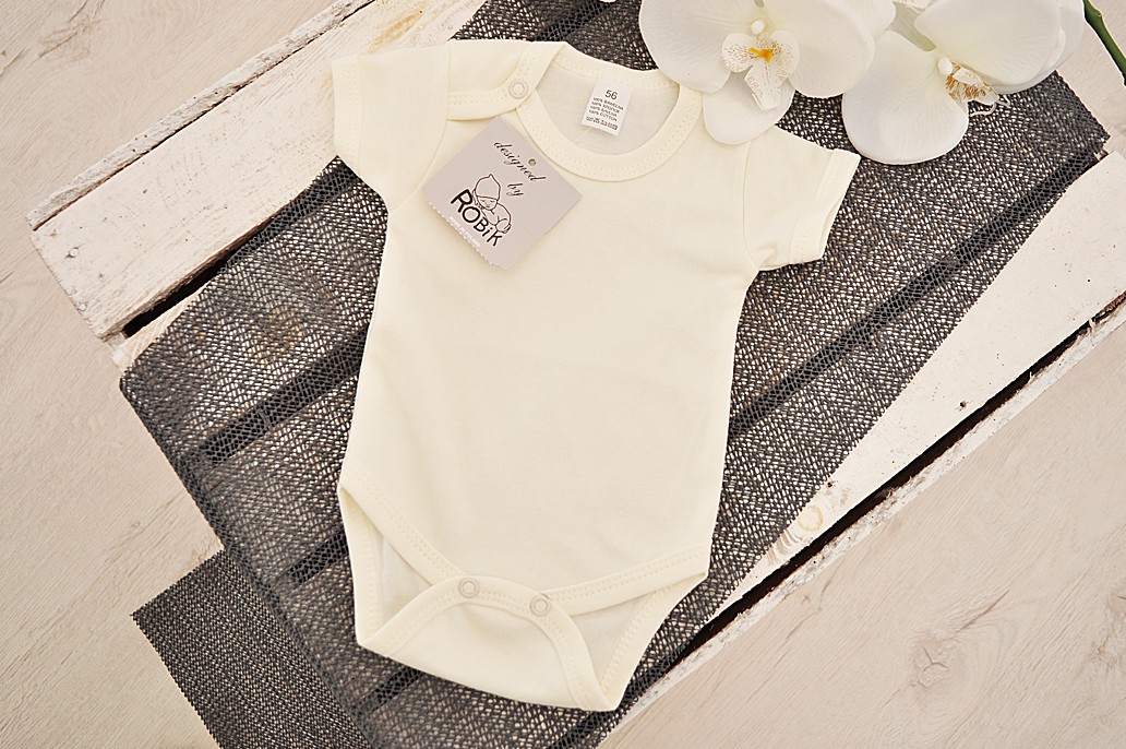 Dziecięce body w kolorze ecru, krótki rękaw.