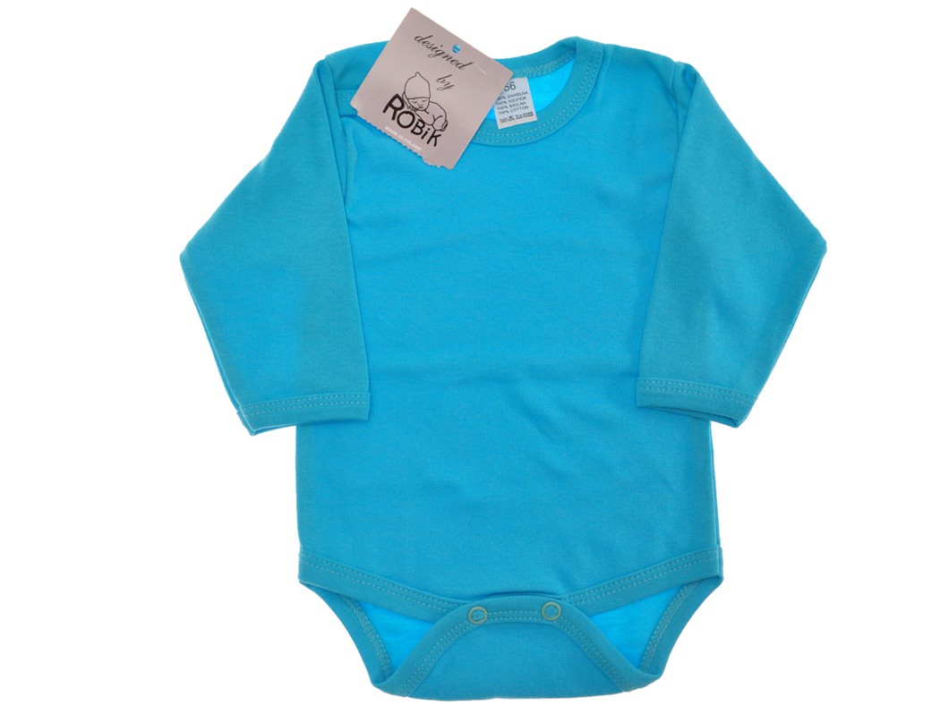 Dziecięce body długi rękaw w kolorze turkusowym.