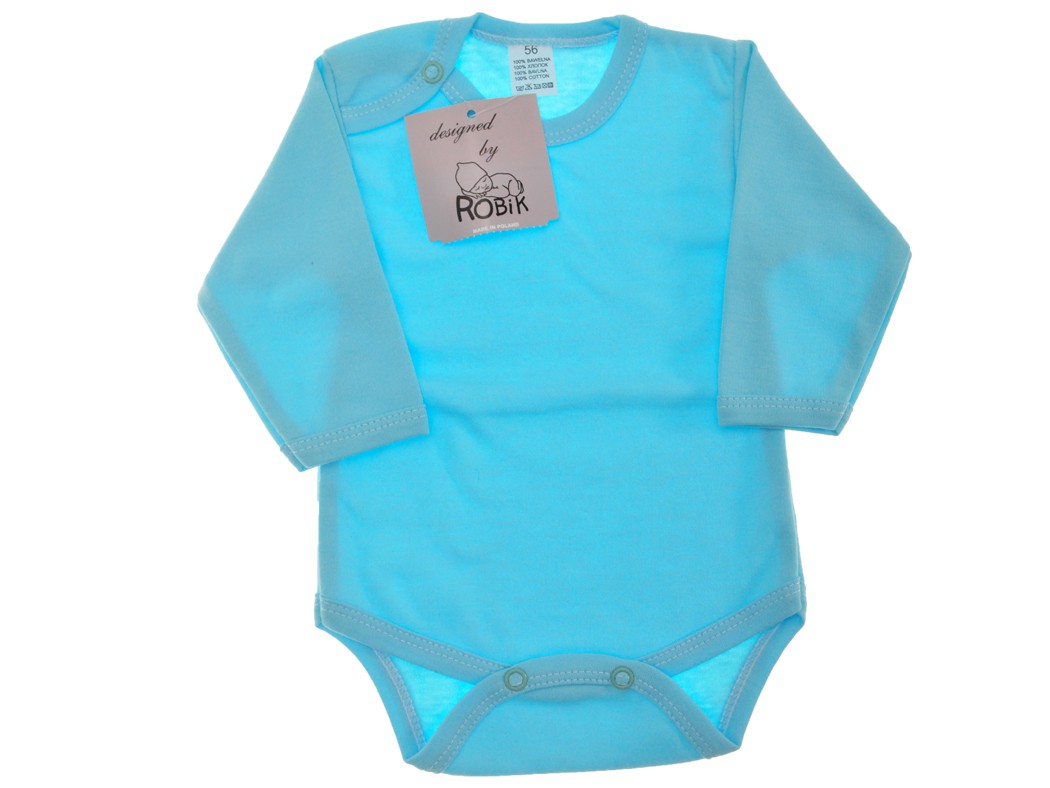 Dziecięce body długi rękaw w kolorze lazurowym.