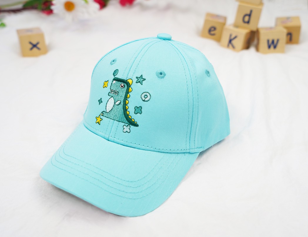 Czapka z daszkiem dla dziecka w kolorze miętowym z haftem dinozaura!