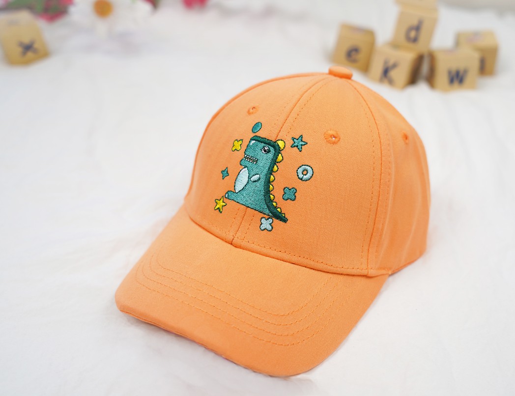 Czapka z daszkiem dla dziecka w kolorze pomarańczowym z haftem dinozaura!