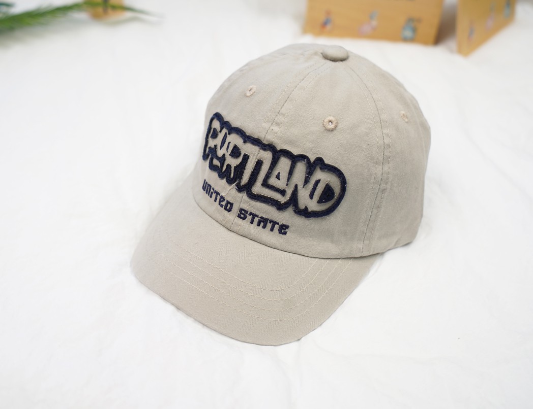 Czapka z daszkiem dla chłopca w kolorze piaskowym z aplikacją PORTLAND.