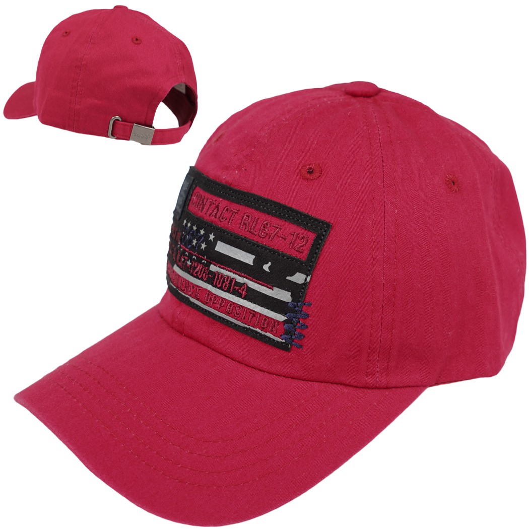 Bordowa czapeczka chłopięca z profilowanym, twardym daszkiem, typ bejsbolówka. Przód czapki zdobi czerwony aplikacja z napisami i motywami wojskowymi. Czapka posiada wszytą z tyłu wpuszczaną regulację oraz małe otworki wentylacyjne. Oferowany model to ponadczasowa chłopięca bejsbolówka, odpowiednia jako czapeczka na wiosnę i lato.