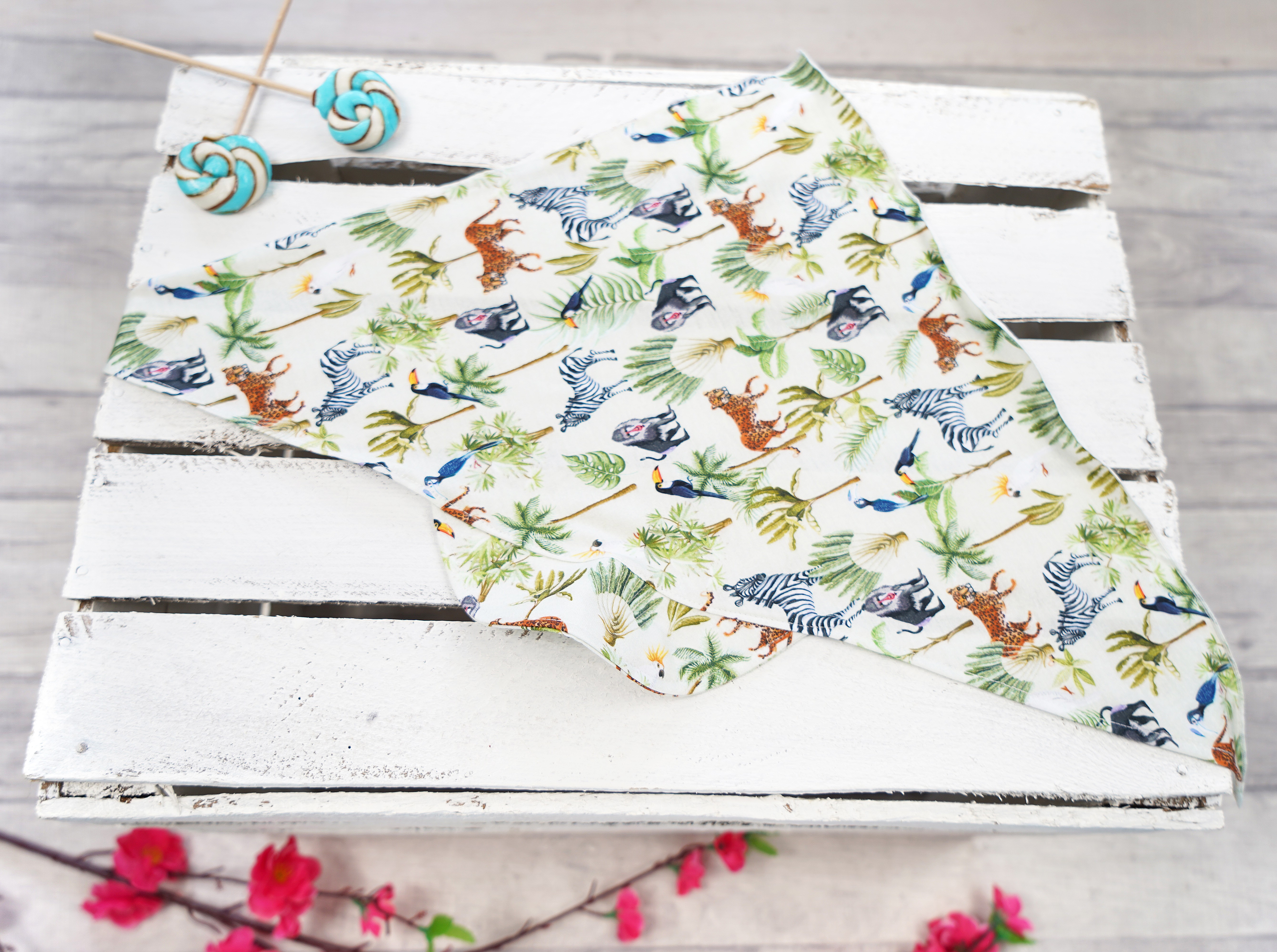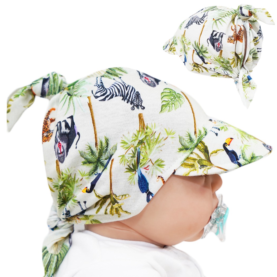 Letnia czapeczka dziecięca typu chusta z elastycznym daszkiem. Chusta dla dziecka wykonana została z miękkiej, atestowanej bawełny z niewielkim dodatkiem elastanu. Chusta wiązana jest przy karku i na czubku głowy dzięki czemu można dopasować ją do wielkości główki i rośnie razem z dzieckiem. Idealnie ochroni główkę dziecka przed przegrzaniem, a przedni daszek oczy przed słońcem. Dzięki wykorzystaniu bardzo miękkiej tkaniny nie spowoduje podrażnień oraz zapobiegnie przetarciom nawet na wrażliwej skórze maluszka.