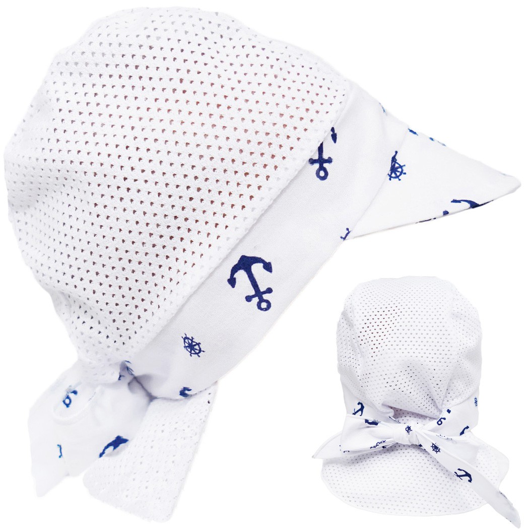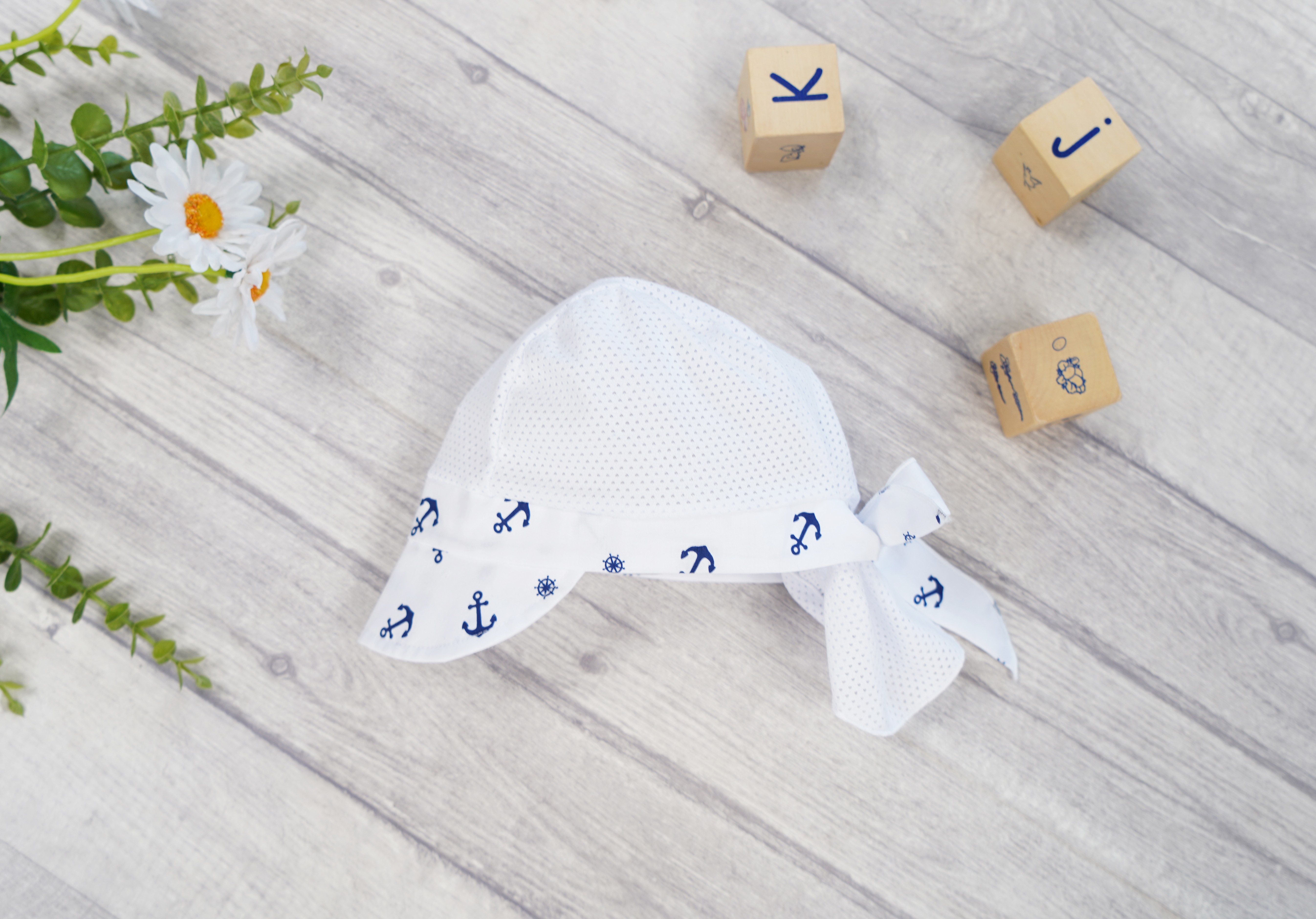 Biała czapka CHUSTA w kotwice z daszkiem wiązana LATO
