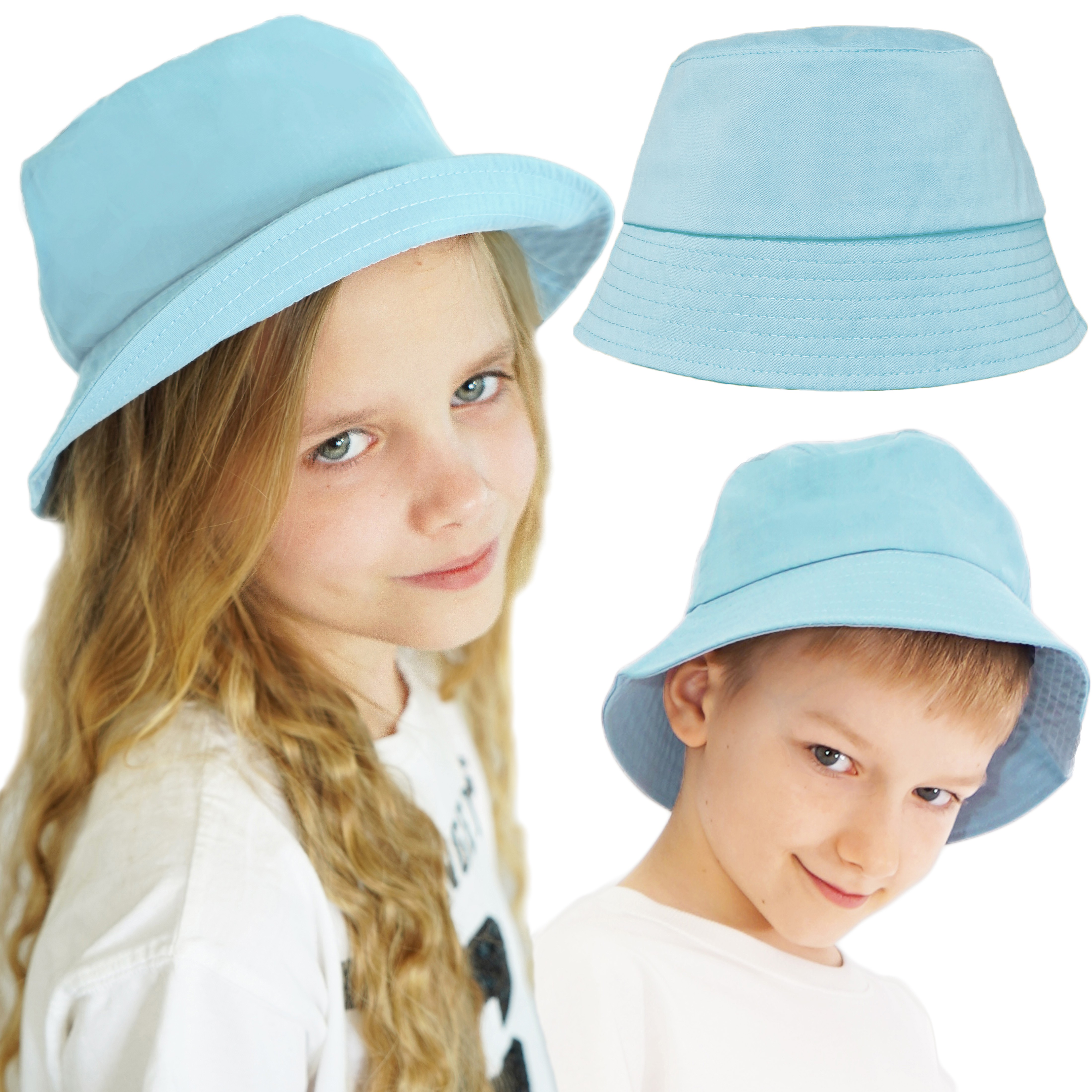 Kapelusz dziecięcy typu bucket hat w kolorze błękitnym. Wykonany przez polskiego producenta ze 100% bawełny. Czapka typu bucket hat to zdecydowany hit lata ale także funkcjonalne i praktyczne nakrycie głowy.