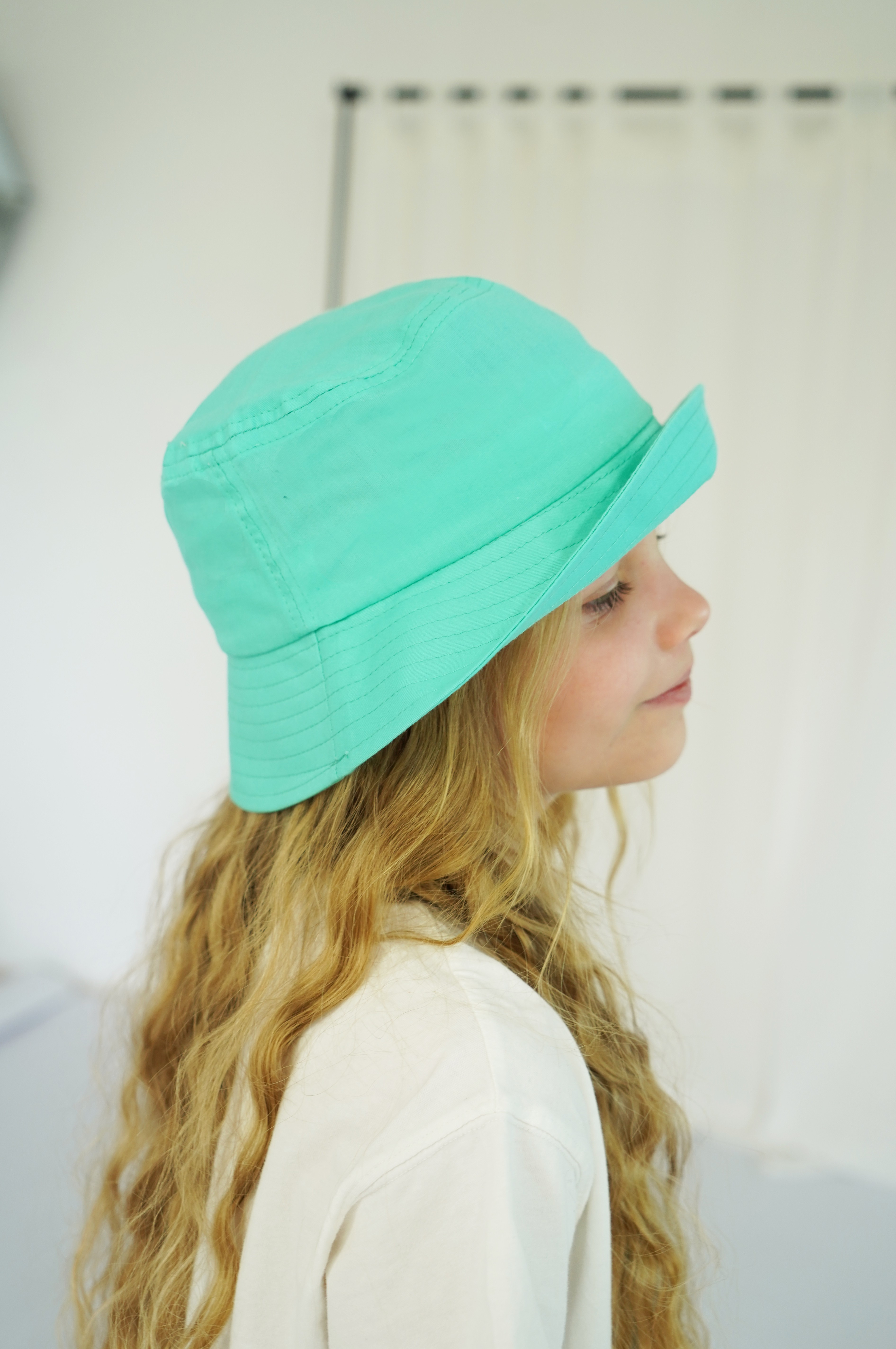 Kapelusz dziecięcy typu bucket hat w kolorze seledynowym. Wykonany przez polskiego producenta ze 100% bawełny. Czapka typu bucket hat to zdecydowany hit lata ale także funkcjonalne i praktyczne nakrycie głowy.