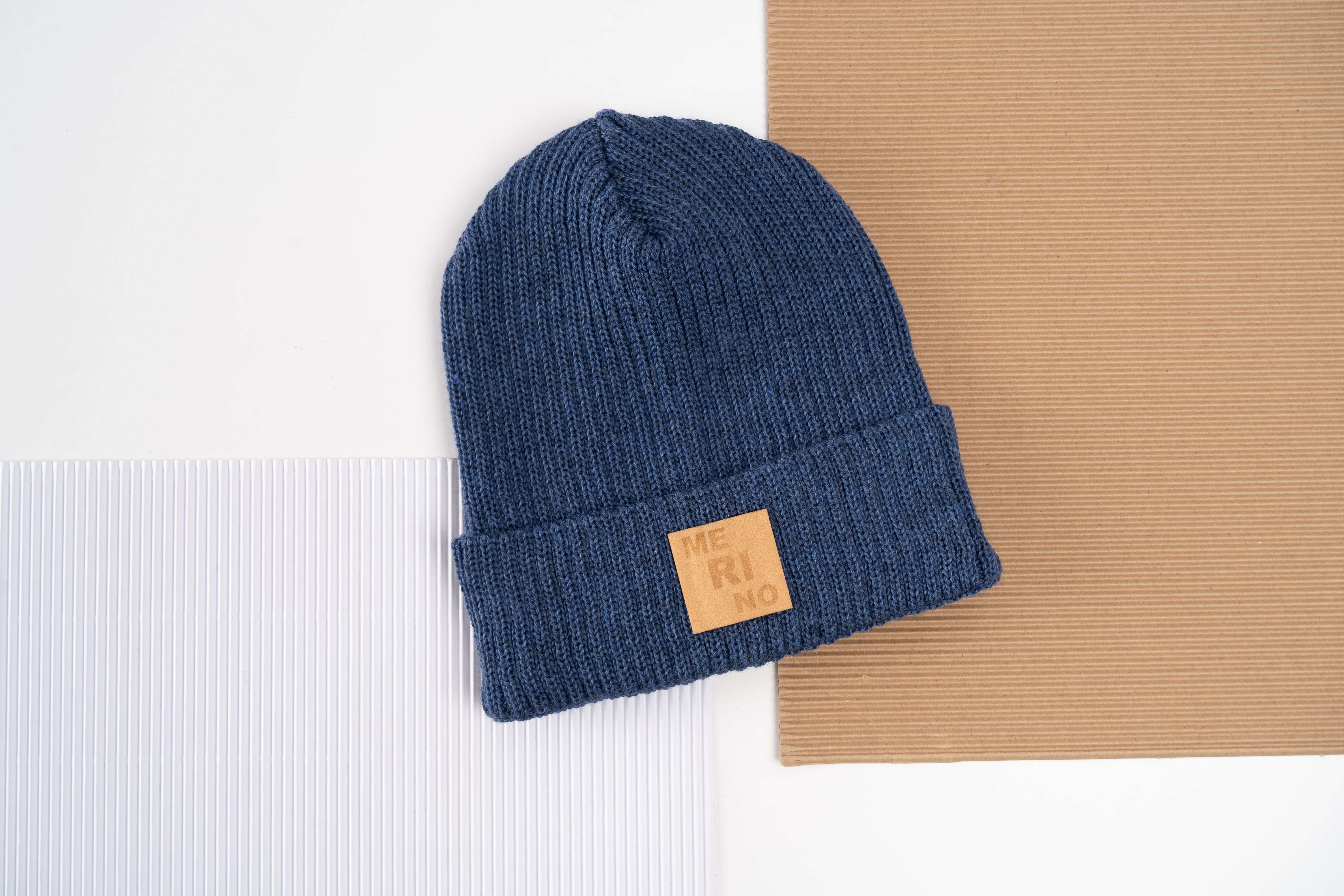 Merino czapka jeans 100% wełna podwijana jesień zima
