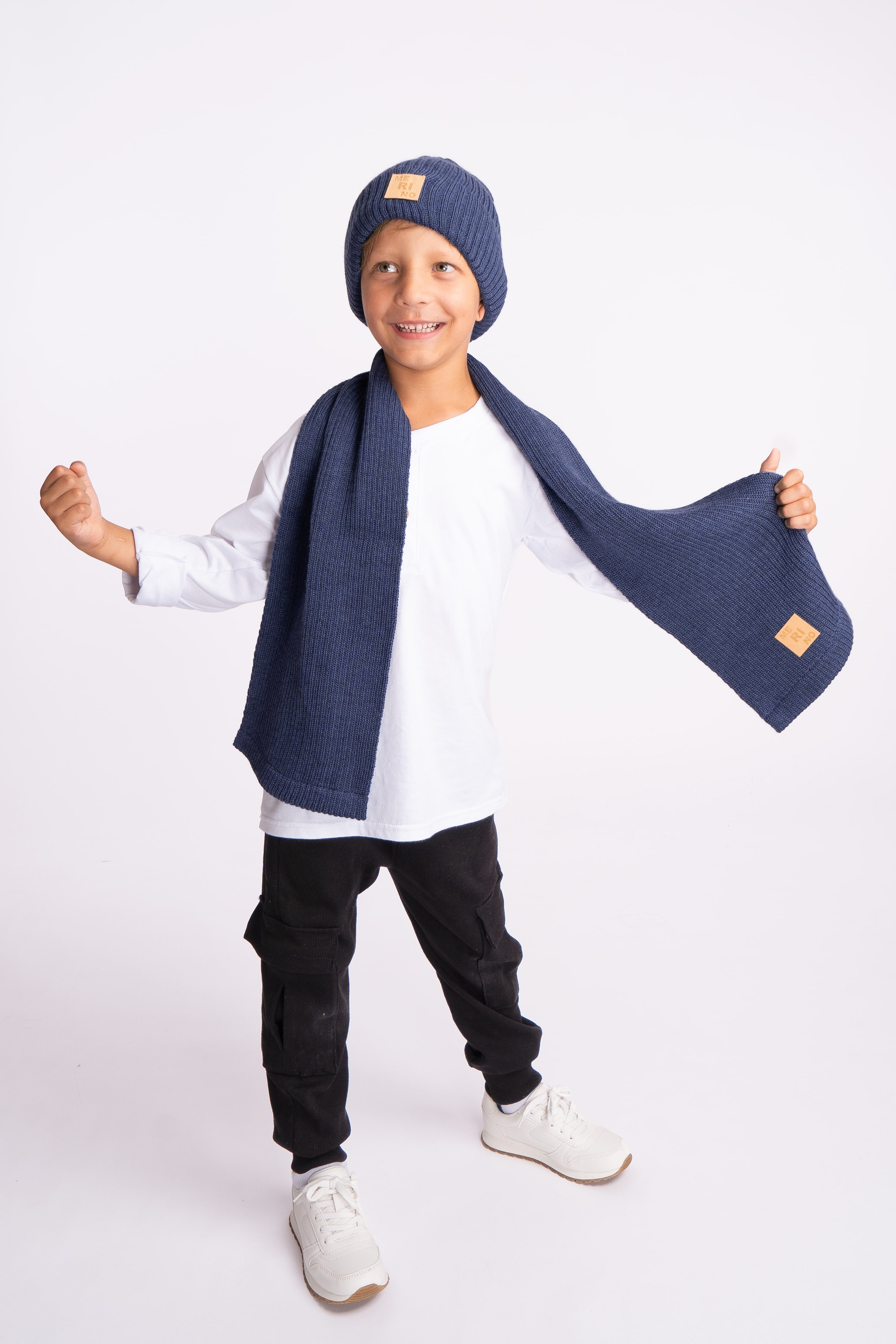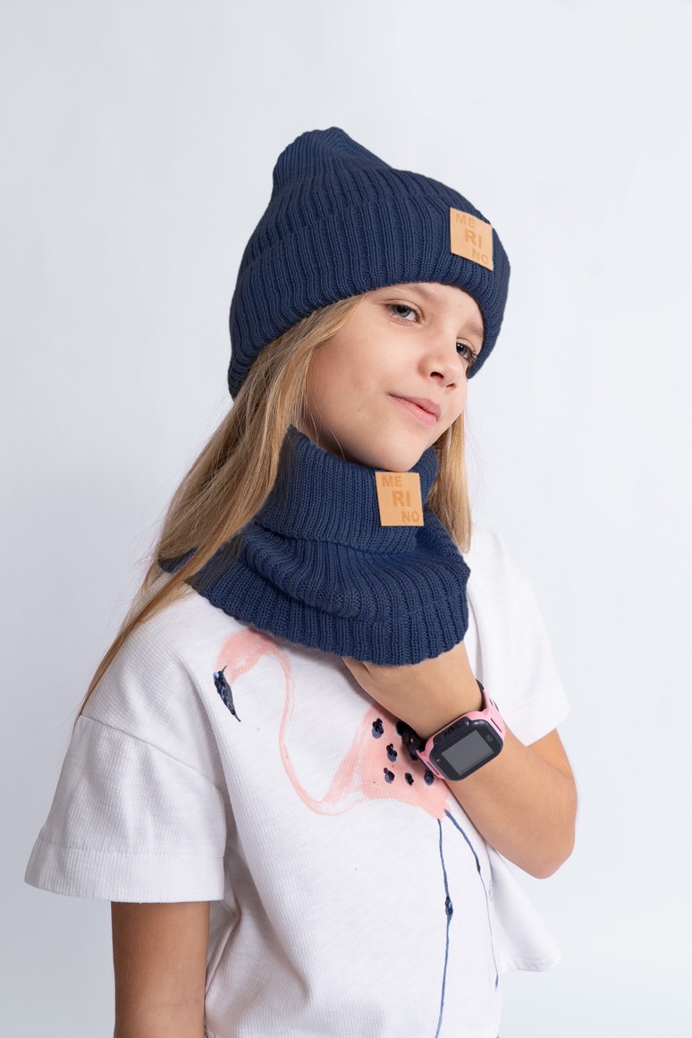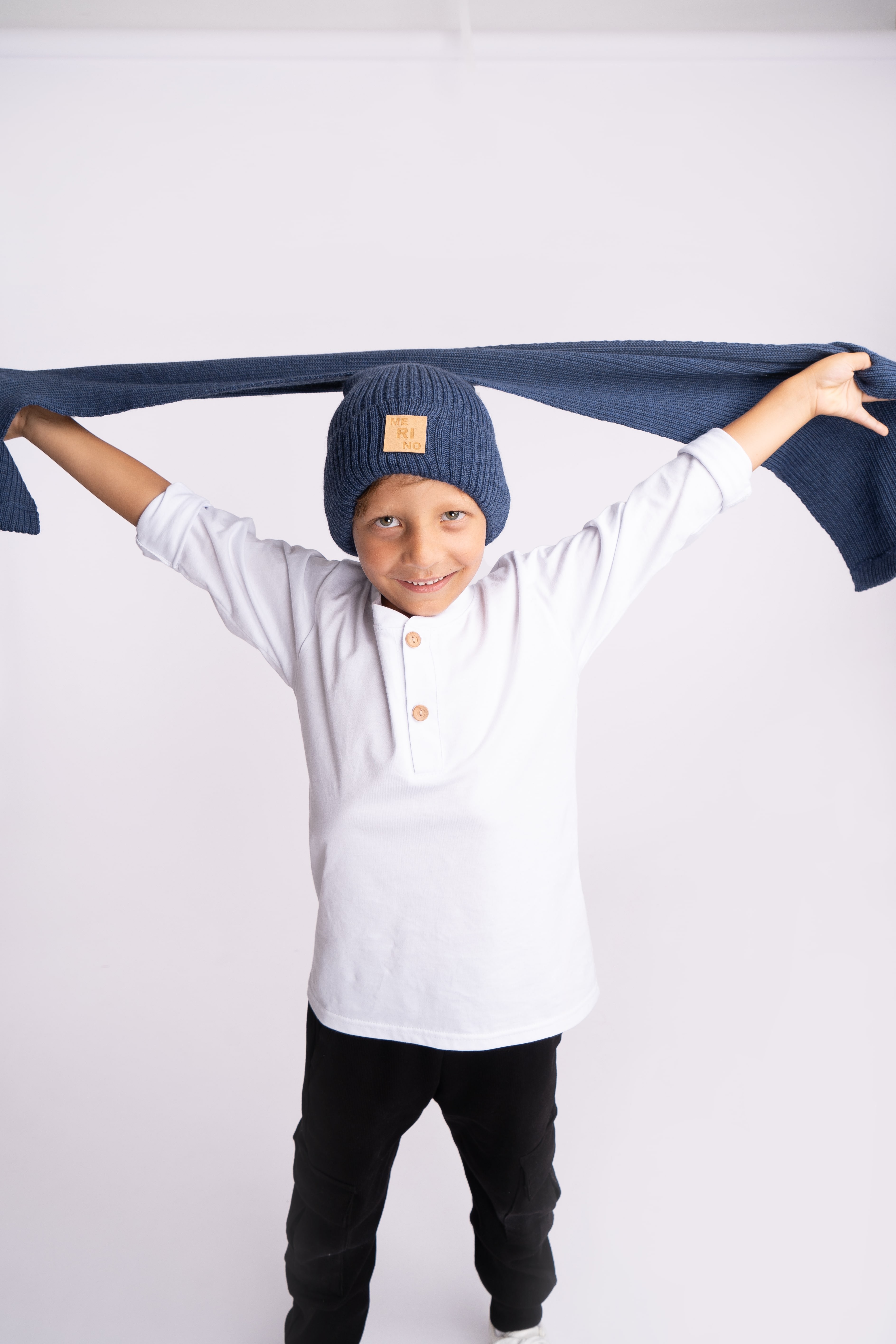 Podwijana czapka dziecięca 100% MERINO w kolorze jeans.