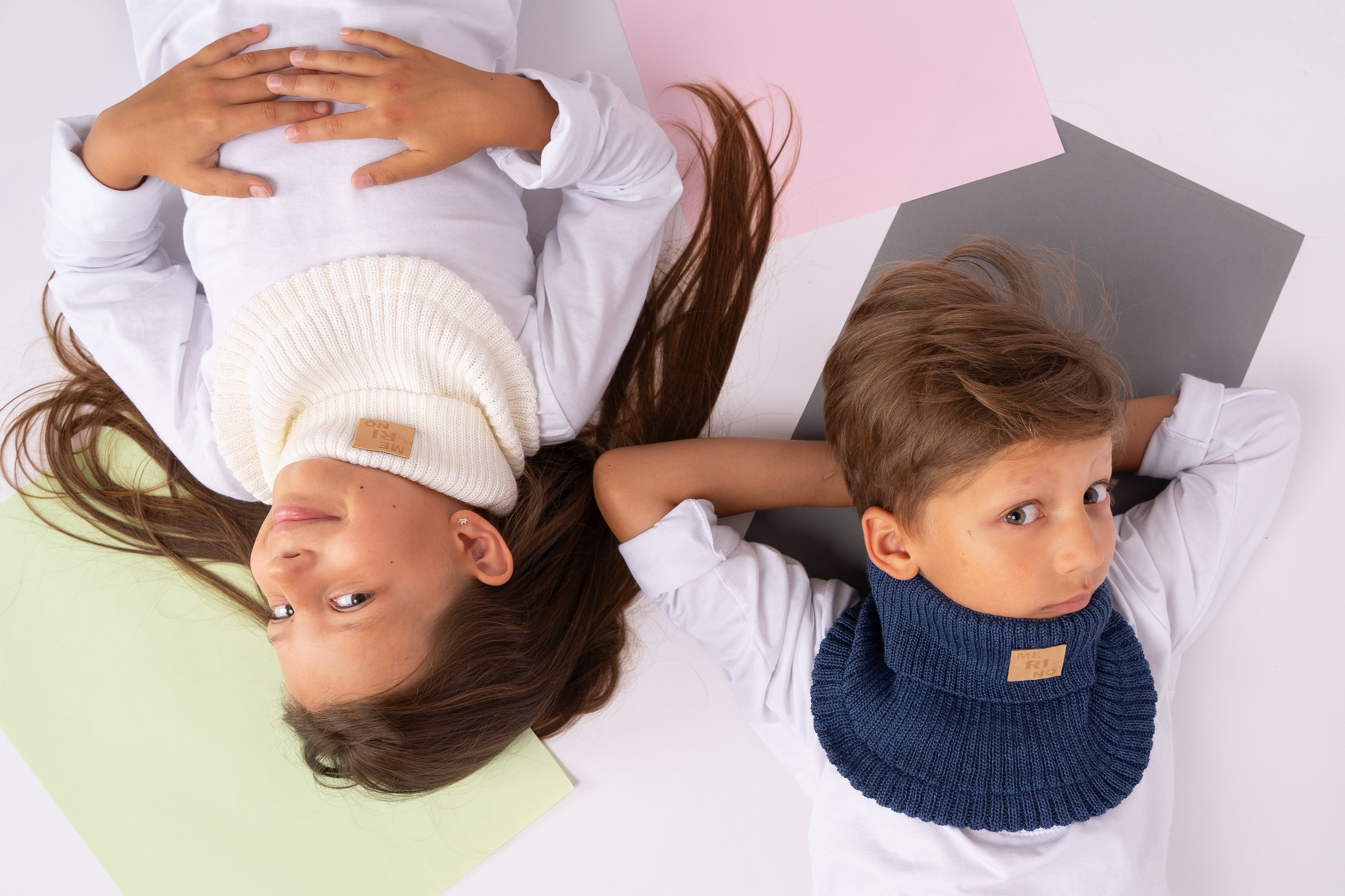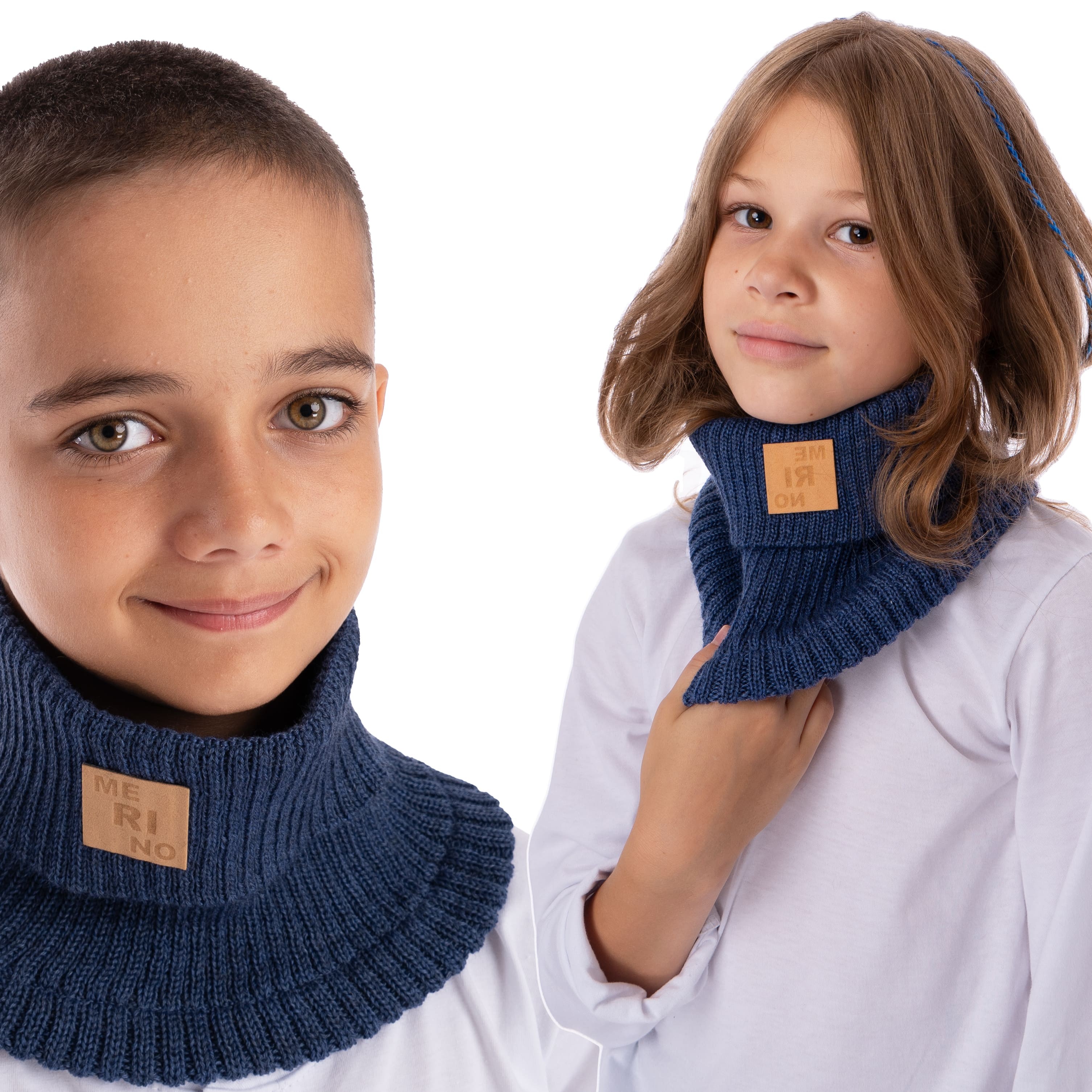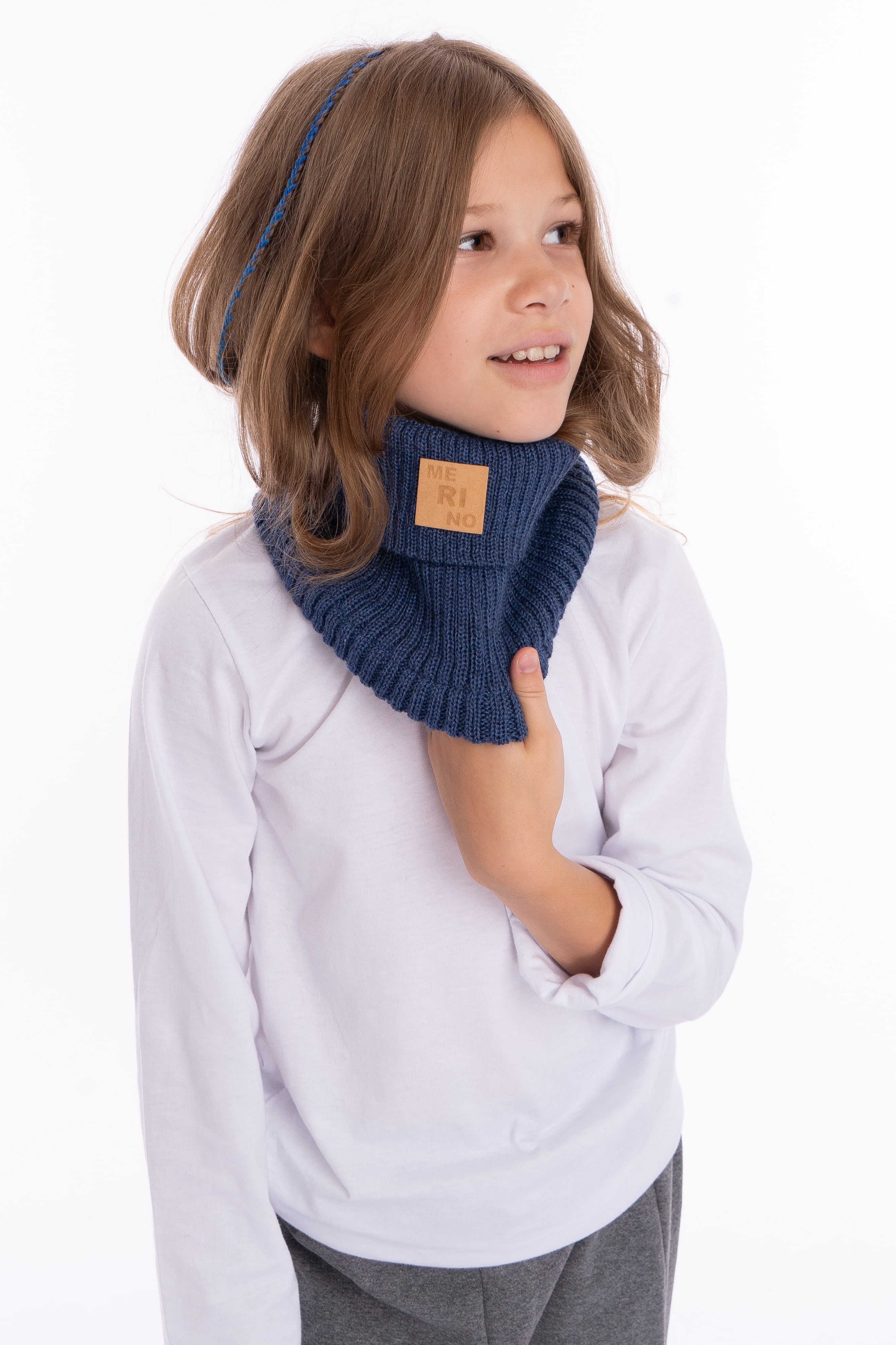 Wywijany komin dziecięcy 100% MERINO w kolorze jeans.