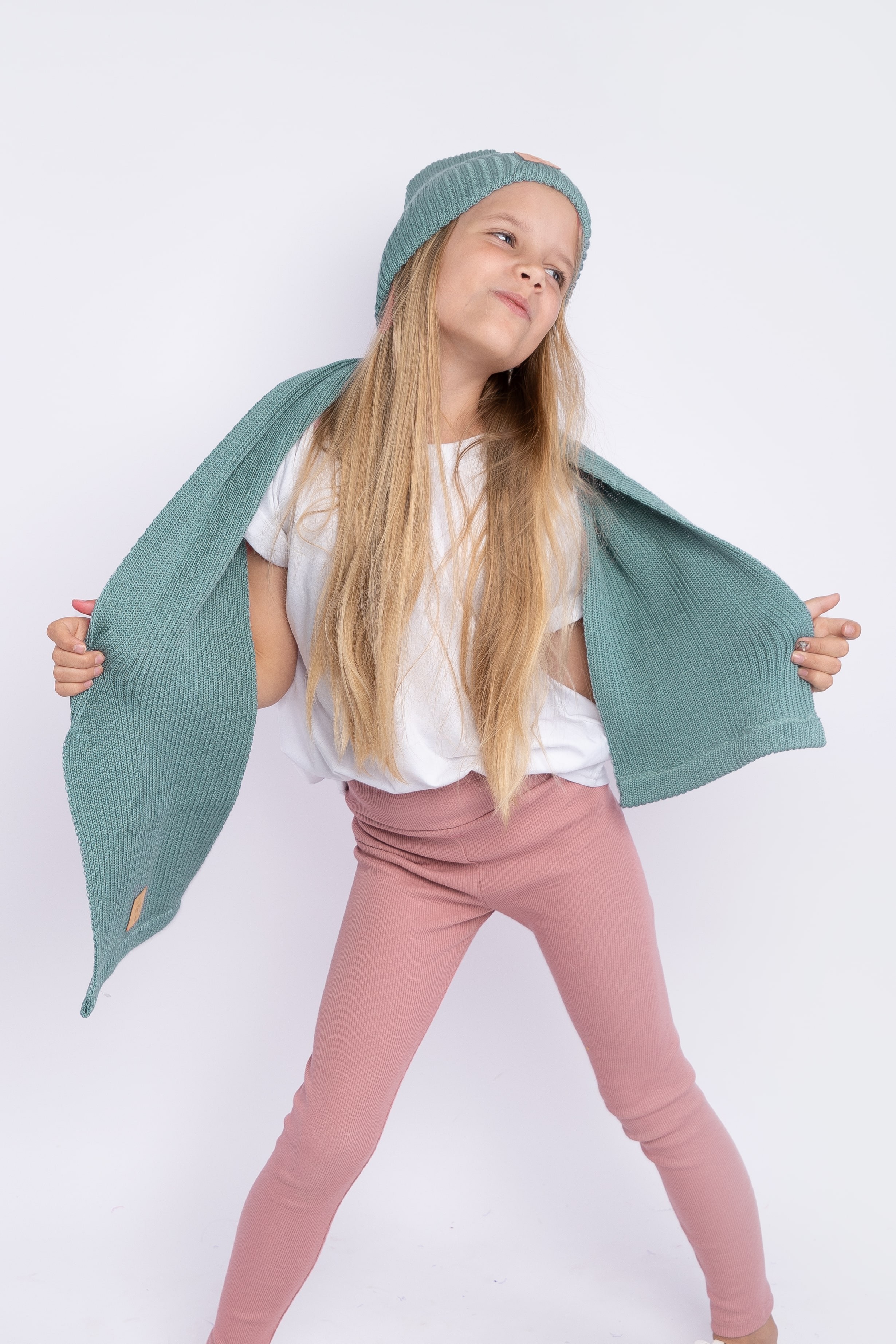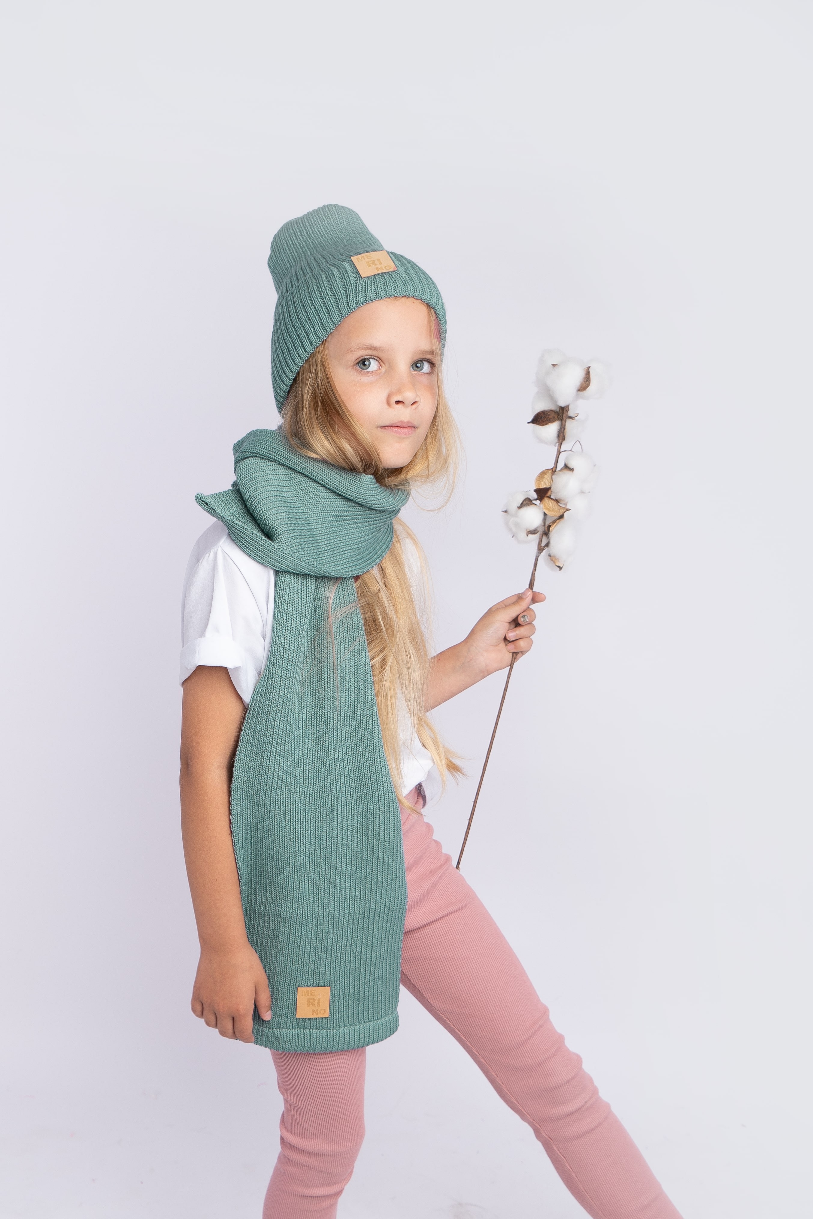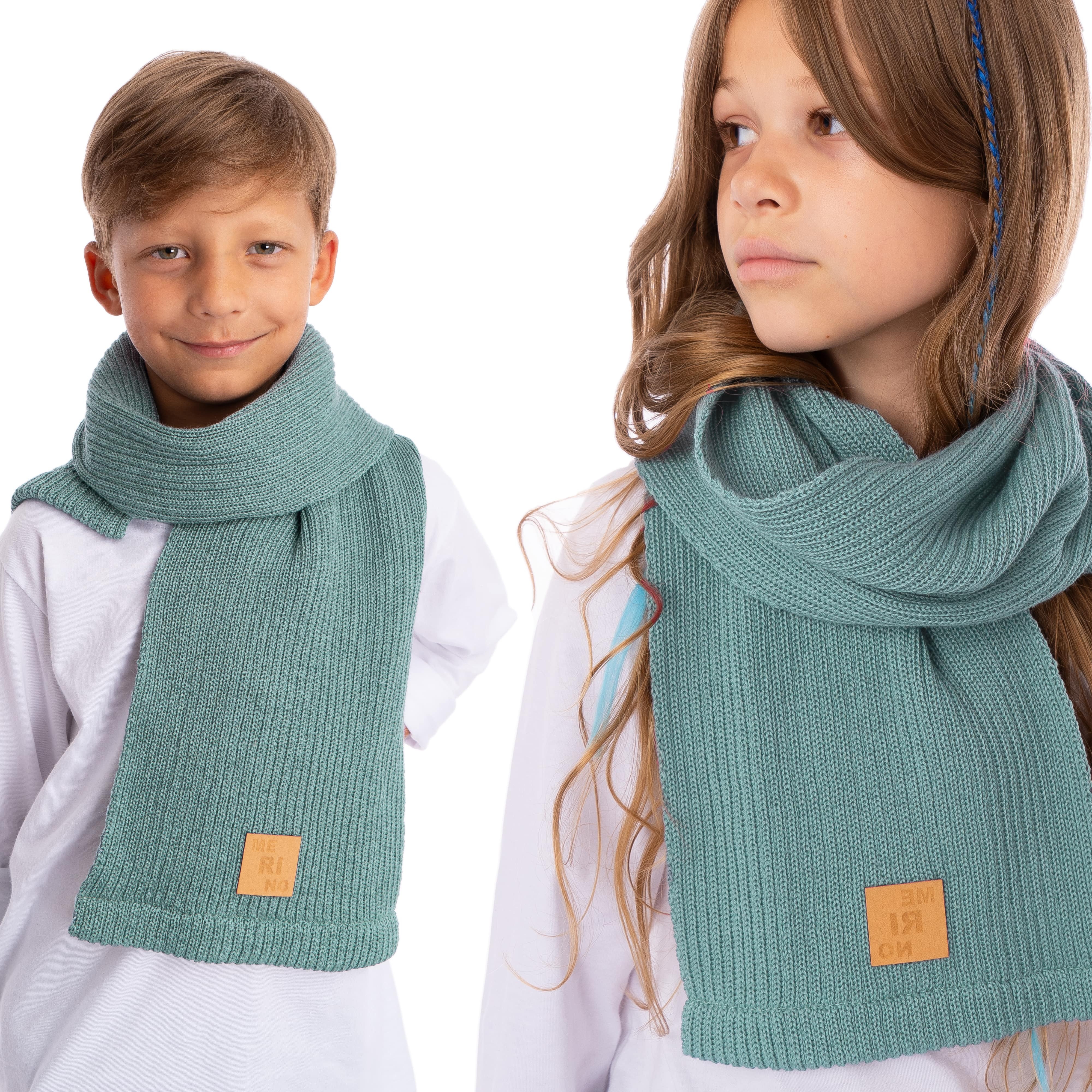 Szalik dziecięcy 100% MERINO w kolorze szałwiowym.