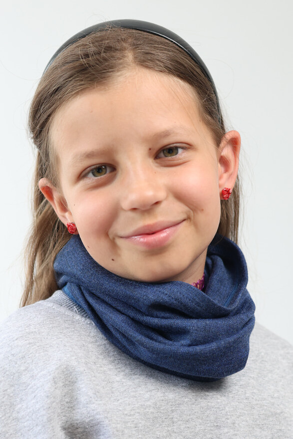 Gładki komin dziecięcy 100% MERINO w kolorze jeansowym.