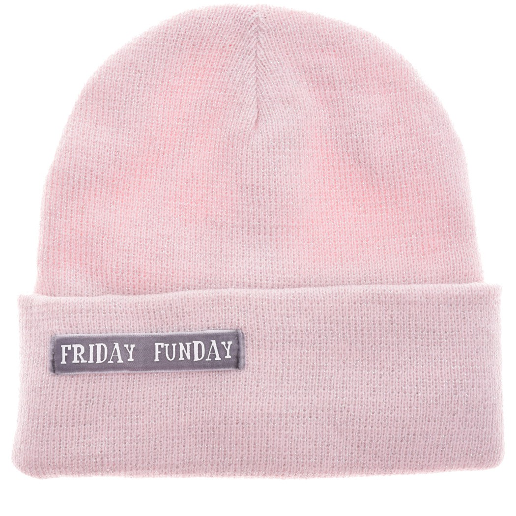 Pudrowa ZIMOWA CZAPKA podwójna FUN DAY brokat