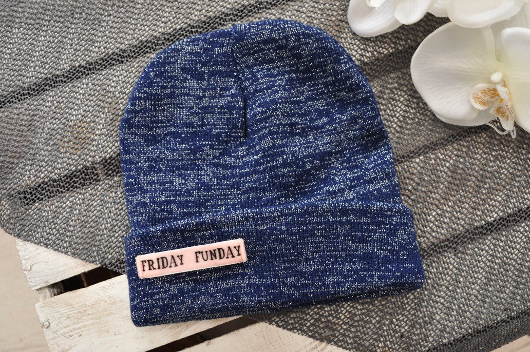 Granatowa ZIMOWA CZAPKA podwójna FUN DAY brokat