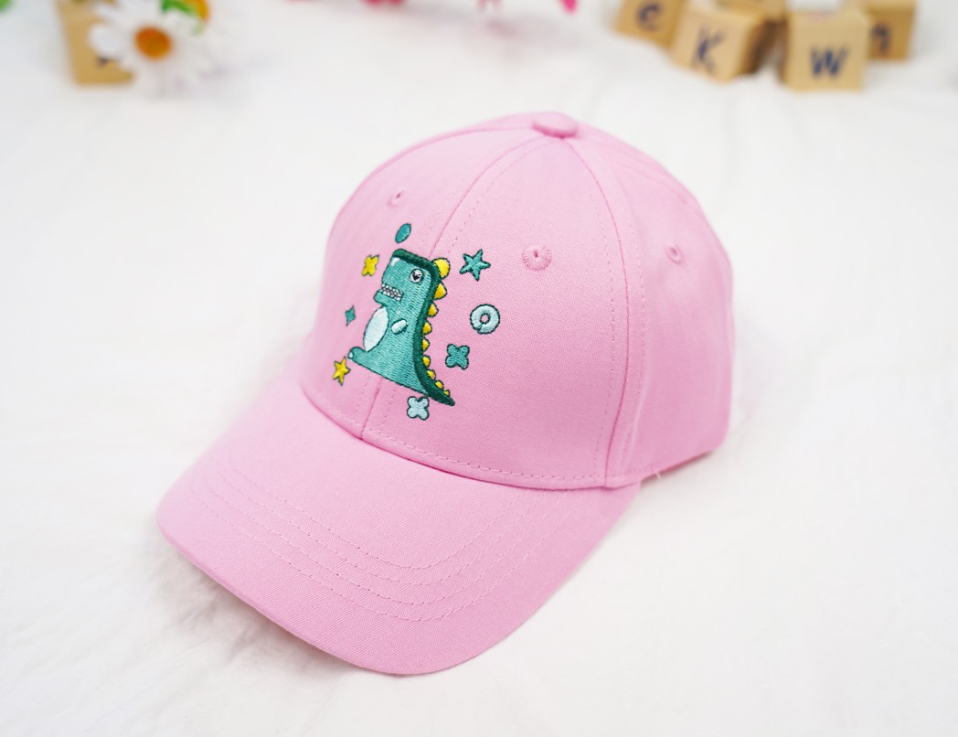 Czapka z daszkiem dla dziecka w kolorze różowym z haftem dinozaura!