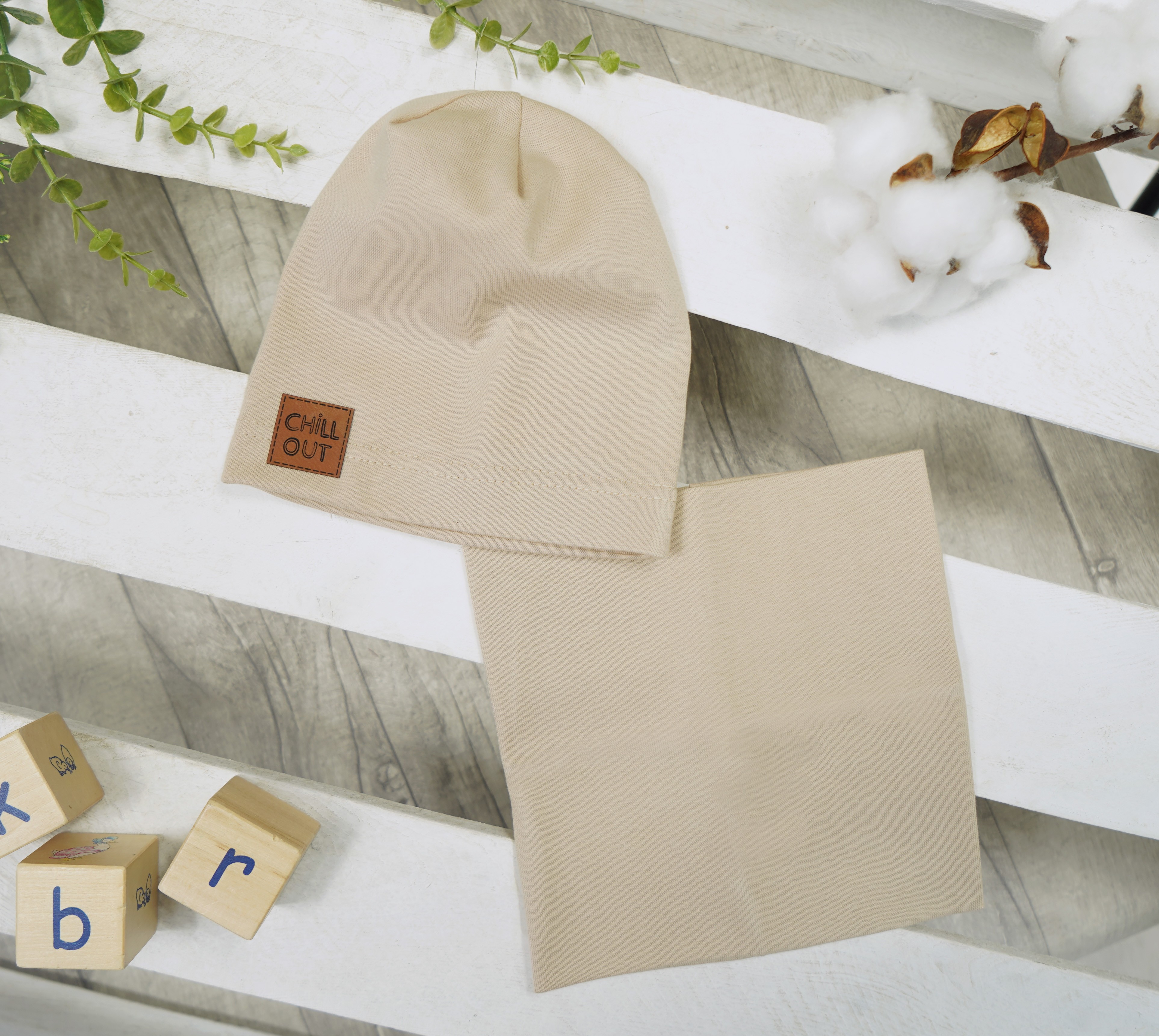 Beżowy komplet CHILL OUT czapka + komin wiosna/jesień
