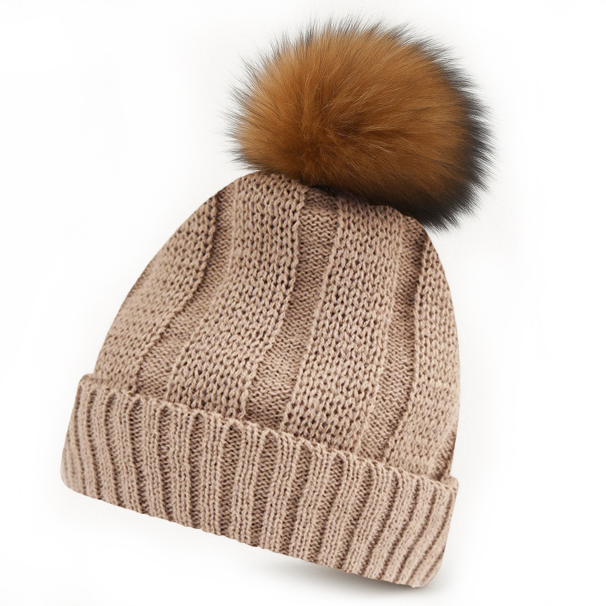 Jasno brązowa czapka zimowa dziewiarska "Piotr" puchaty pompon
