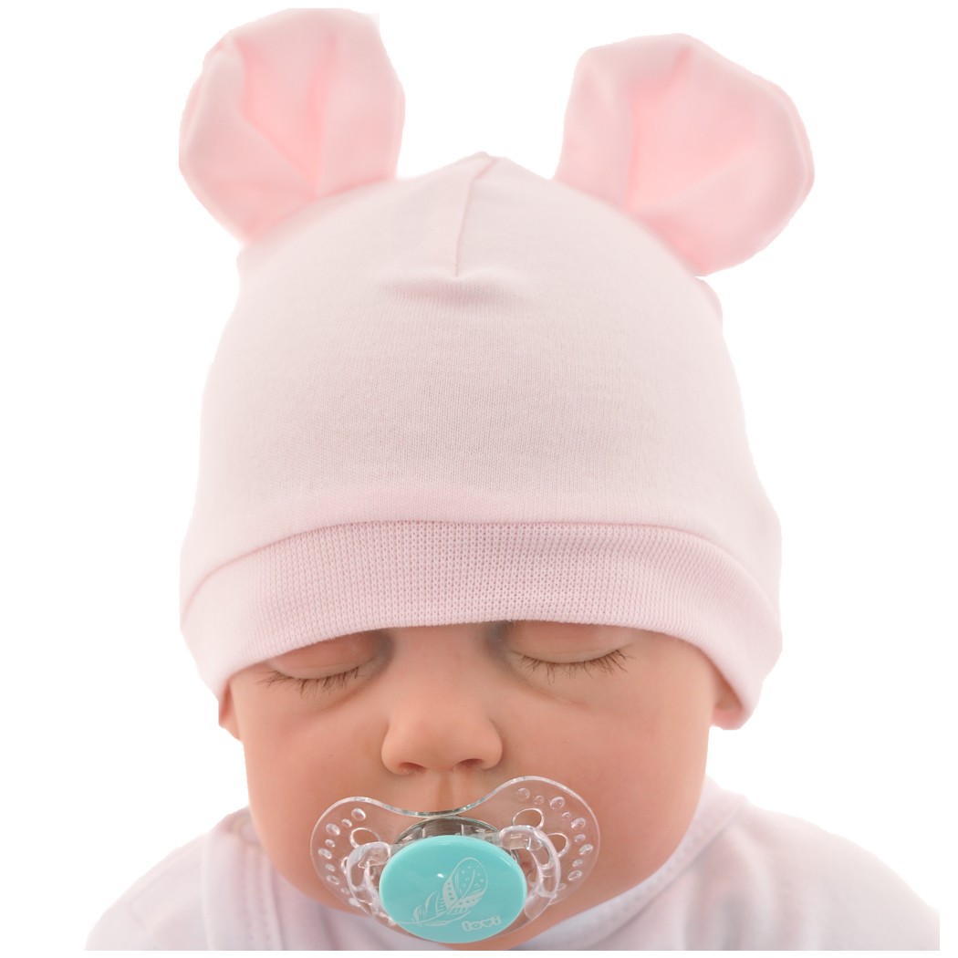 Czapeczka dla noworodka wykonana z miękkiej różowej bawełny wysokiej jakości z odstającymi, trójwymiarowymi uszkami, które dodają smerfetce niemowlęcej wyjątkowego uroku.To niezbędny element wyprawki do szpitala. Dobrze chroni główkę dziecka przed wychłodzeniem, idealna po kąpieli i na wiosenne spacery a także pod zimową czapkę. Chroni uszka dziecka przed wiatrem a rozciągliwa dzianina, nie uciska główki. Orientacyjnie dla dziecka noszącego rozmiar ubranek rozmiar 56-62.