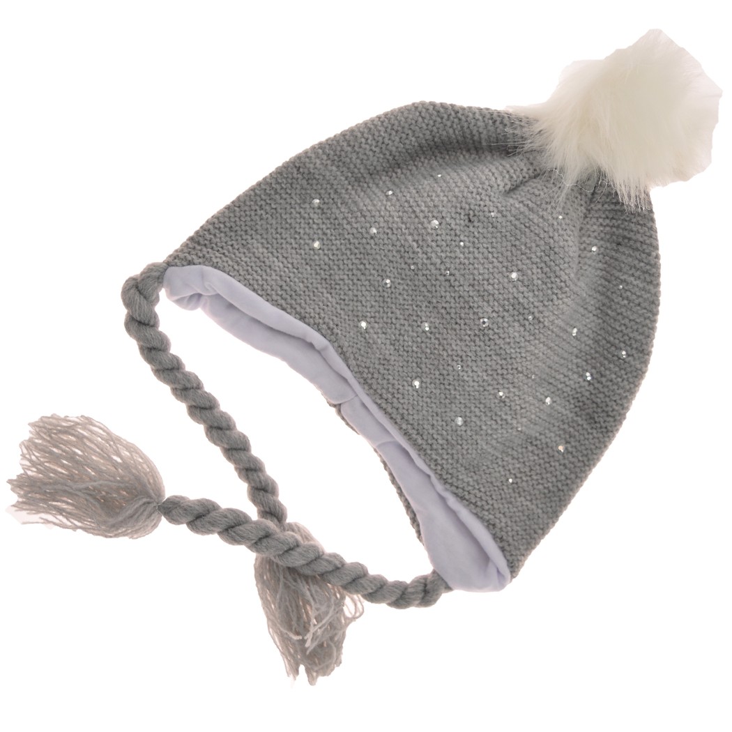 Czapka zimowa w kolorze szarym z bawełnianą podszewką i białym pomponem z imitacji futra.