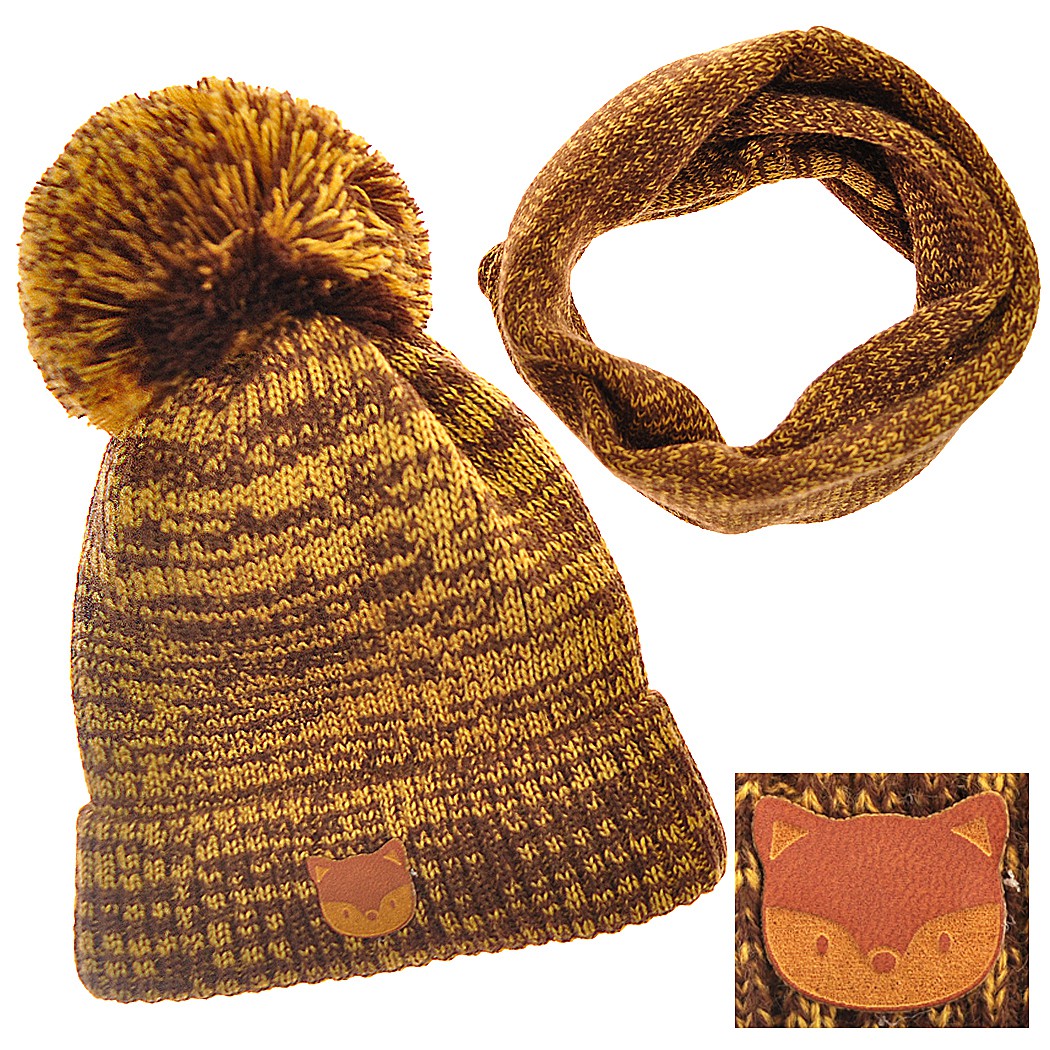 Musztardowo-brązowy komplet zimowy LISEK czapka + komin