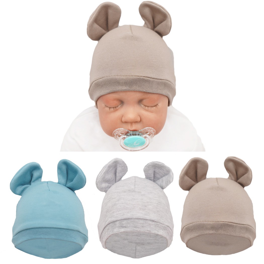 Czapeczki dla noworodka wykonane z miękkiej bawełny wysokiej jakości z odstającymi, trójwymiarowymi uszkami, które dodają smerfetce niemowlęcej wyjątkowego uroku. To niezbędny element wyprawki do szpitala. Dobrze chronią główkę dziecka przed wychłodzeniem, idealne po kąpieli i na wiosenne spacery a także pod zimową czapkę. Chronią uszka dziecka przed wiatrem a rozciągliwa dzianina, nie uciska główki. Orientacyjnie dla dziecka noszącego rozmiar ubranek rozmiar 56-62.