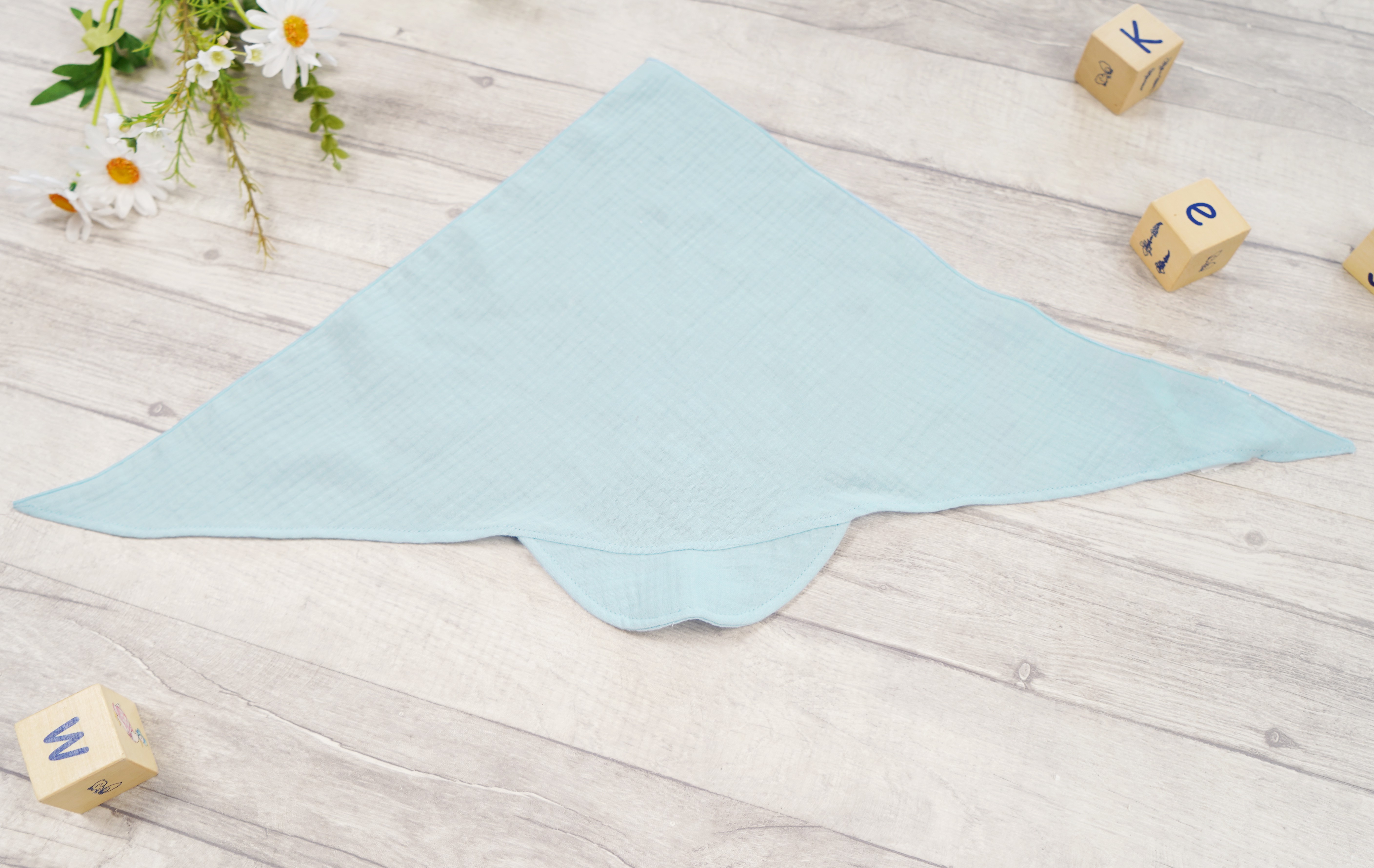 Miękki i wygodny materiał- przewiewna i naturalna tkanina z której wykonana jest chusteczka to miękka i miła w dotyku muślinowa bawełna, co zapewnia komfort tym najbardziej wymagającym. Dzięki wykorzystaniu bardzo miękkiej tkaniny, chusteczka nie spowoduje podrażnień oraz zapobiegnie przetarciom nawet na wrażliwej skórze maluszka.