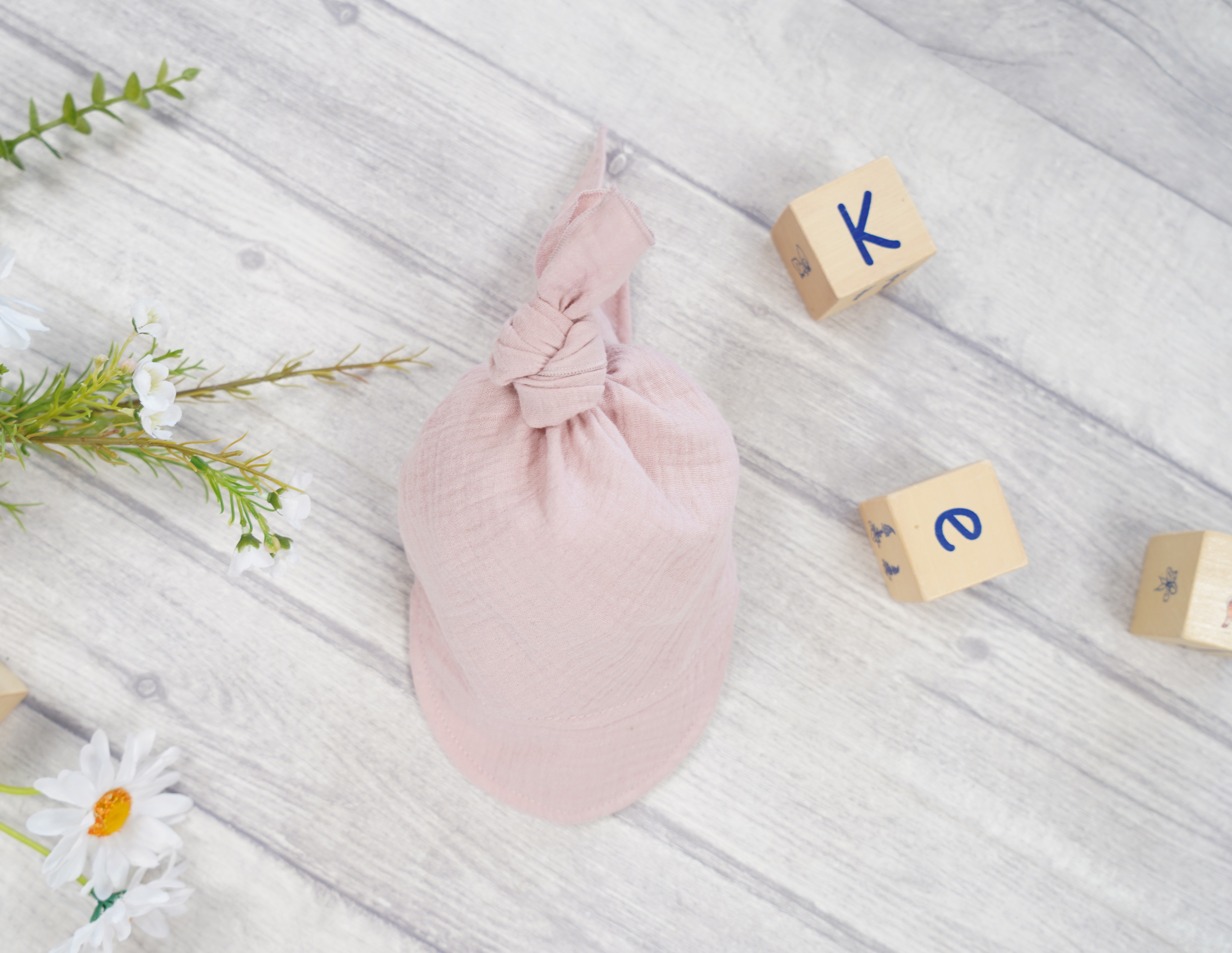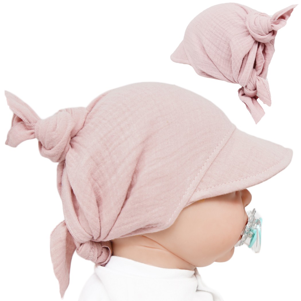 Czapka CHUSTA muślinowa brudny róż z daszkiem wiązana LATO