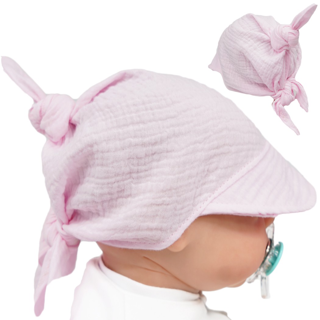 Czapka CHUSTA muślinowa jasny róż z daszkiem wiązana LATO