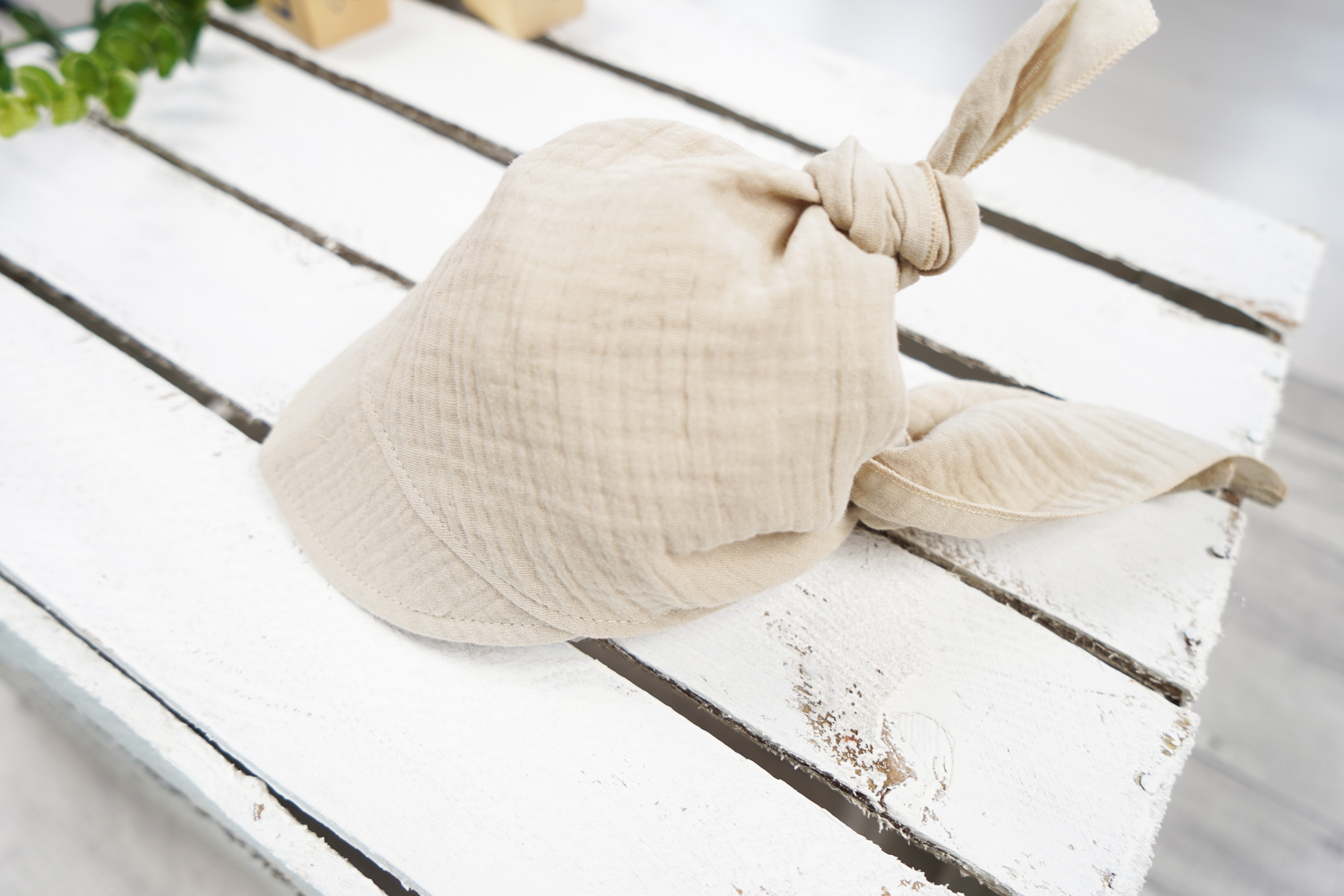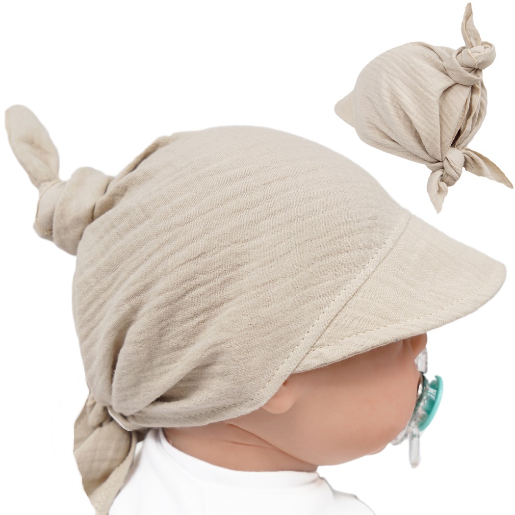 Czapka CHUSTA muślinowa beżowa z daszkiem wiązana LATO