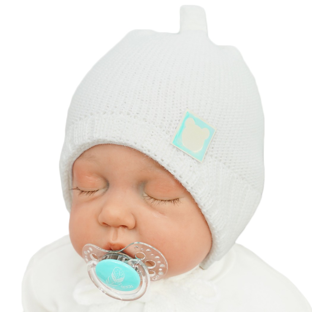 Biała czapka zimowa dla noworodka: czapeczka na zimę MisiaczekChrzest