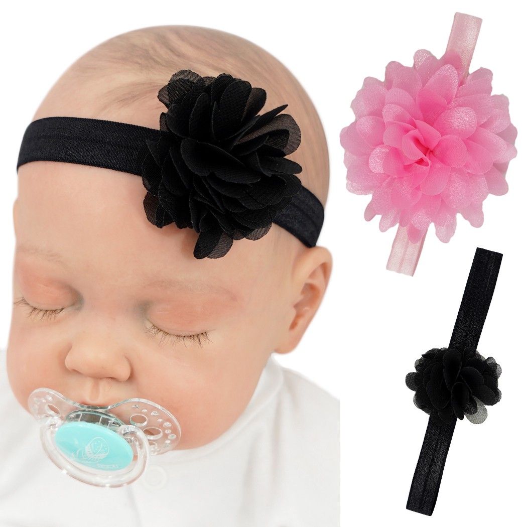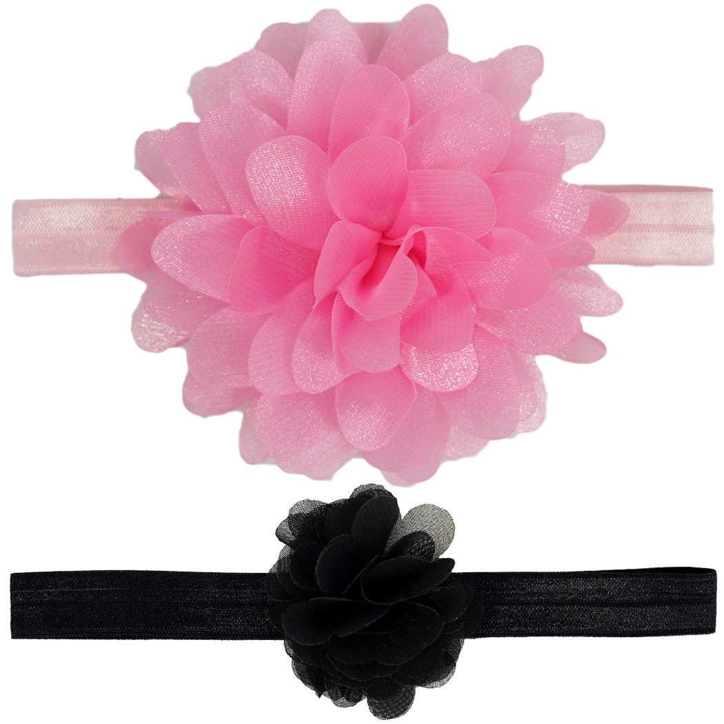 Śliczne opaski dla dziewczynki w kolorze różowym i czarnym. Na wąskim, elastycznym pasku umieszczony jest efektowny kwiat. Opaski dziewczęce wykonane są z przyjemnego w dotyku i elastycznego materiału, dzięki czemu idealnie dopasowują się do główki dziecka. Rozmiar uniwersalny dla rozmiarów w przedziale 38-44 dzięki swojej elastyczności. Dziewczęce opaski na głowę stanowią doskonałe wykończenie każdej stylizacji i sprawiają, że dziewczynki wyglądają wyjątkowo uroczo.