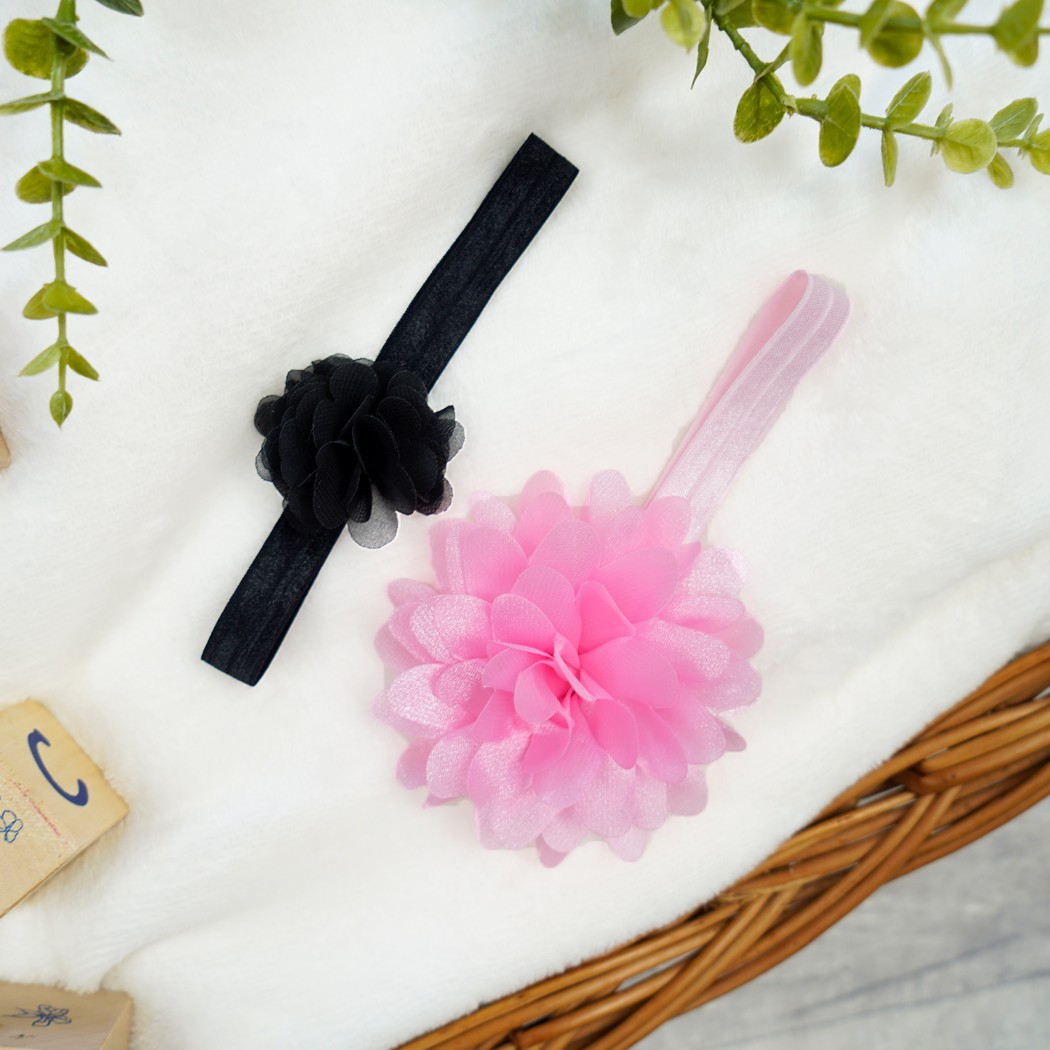 2pak Opaska dziewczęca z kwiatkiem czarna różowa