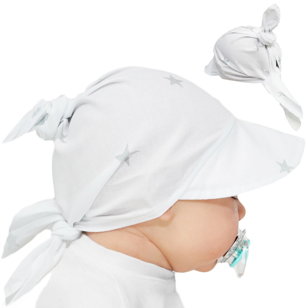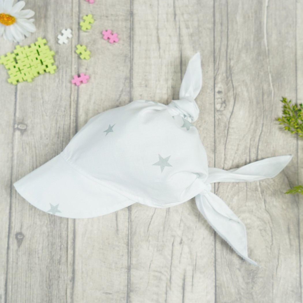 Biała czapka CHUSTA w gwiazdki z daszkiem wiązana LATO