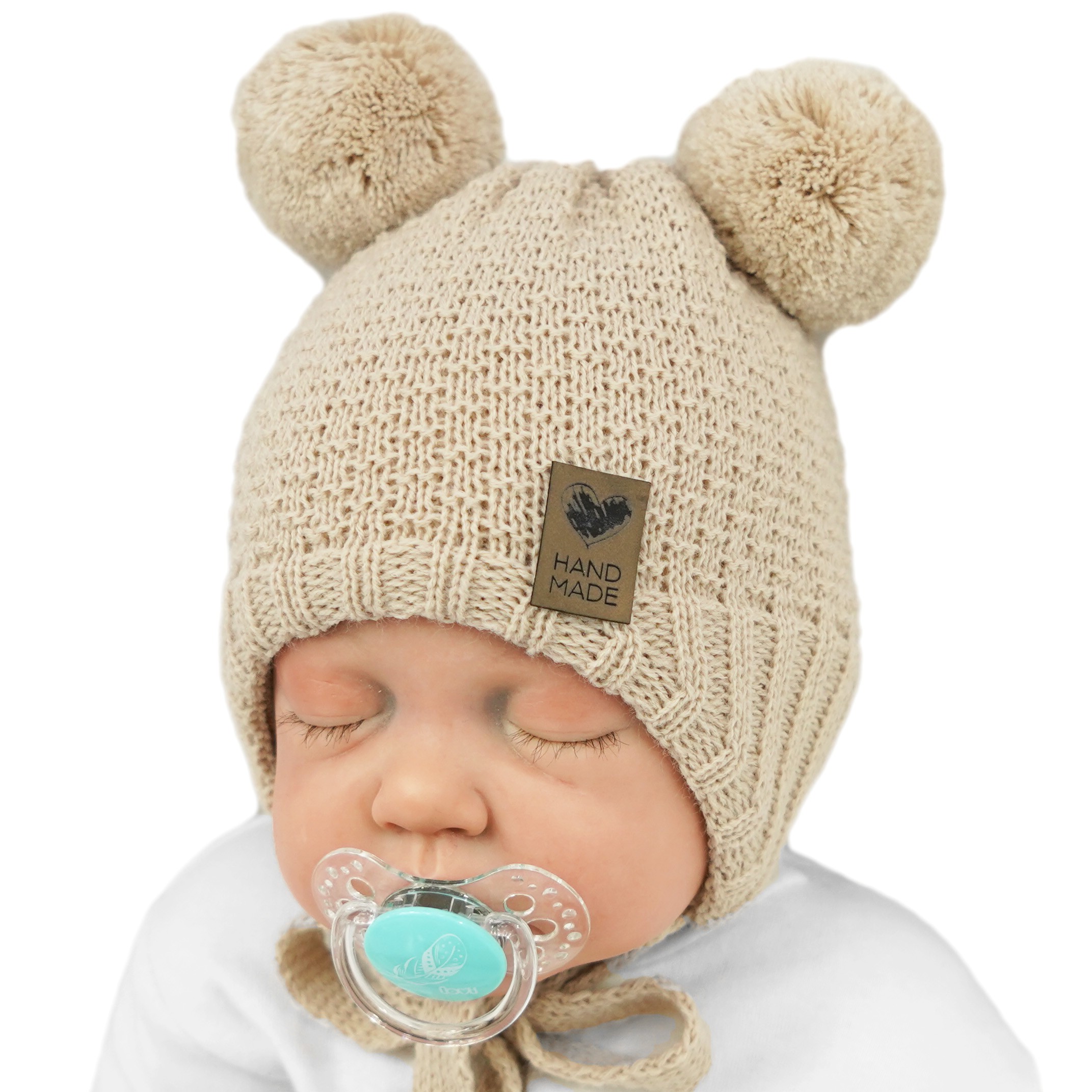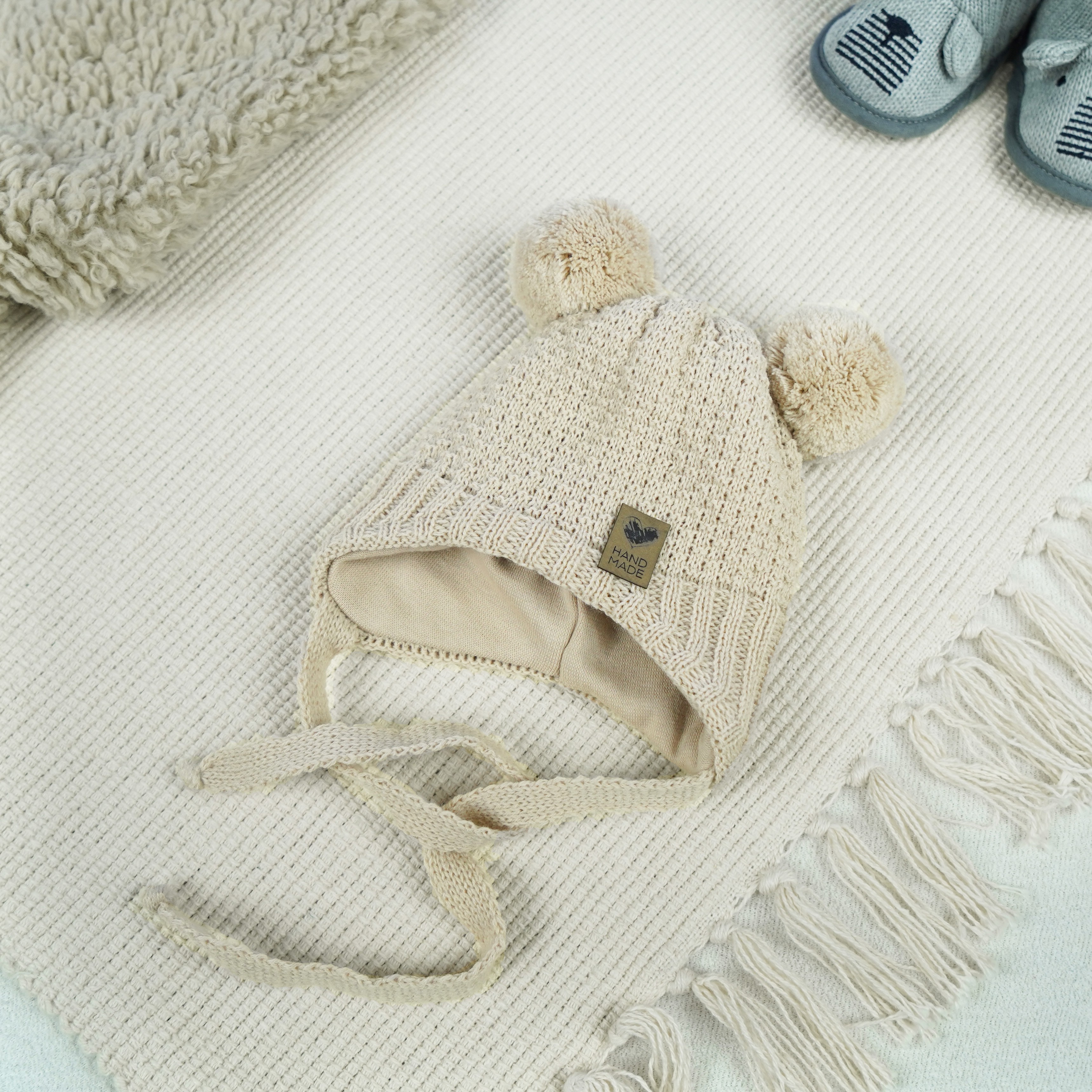 Jasno beżowa CZAPKA wiązana 2 pompony HAND MADE zimowa