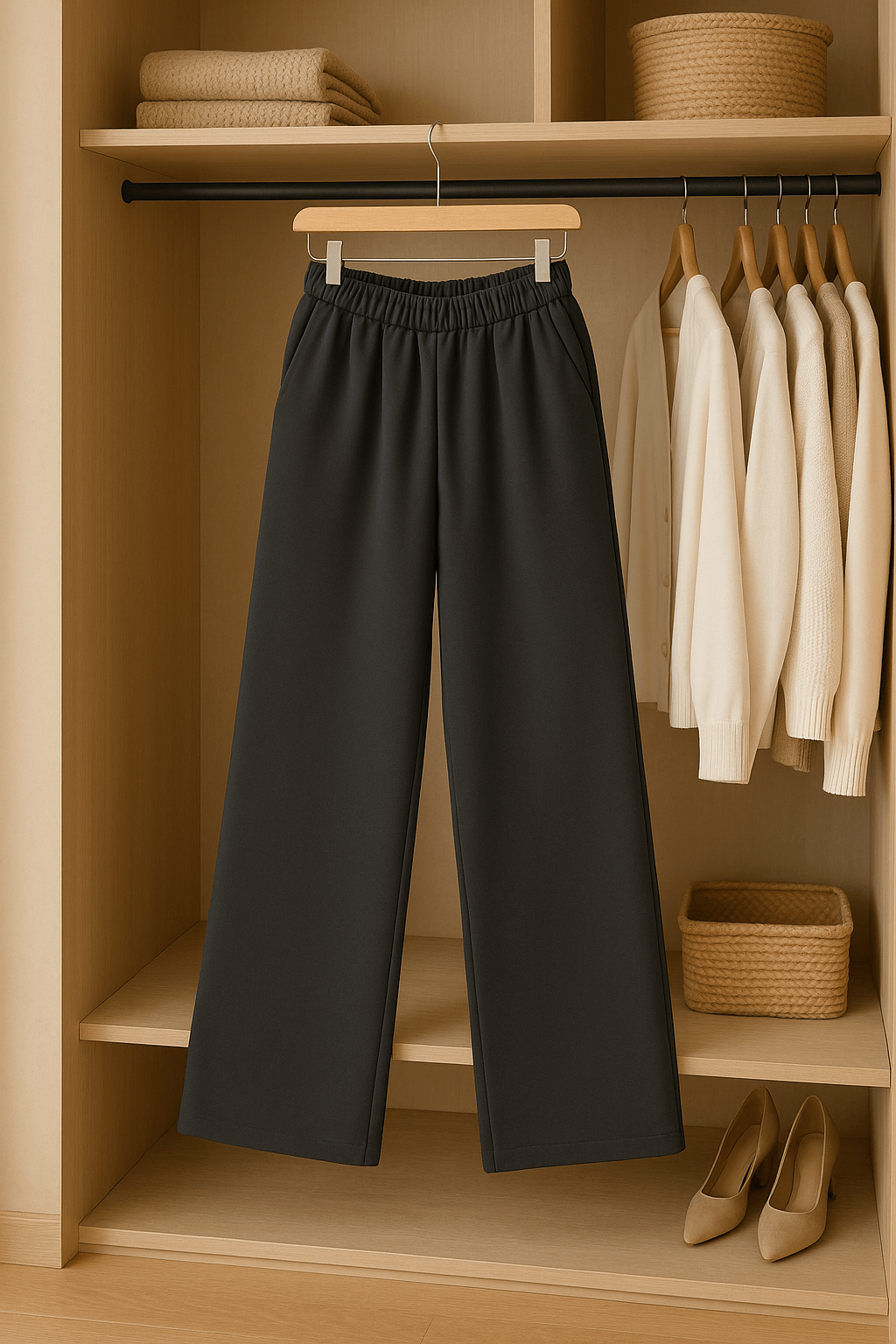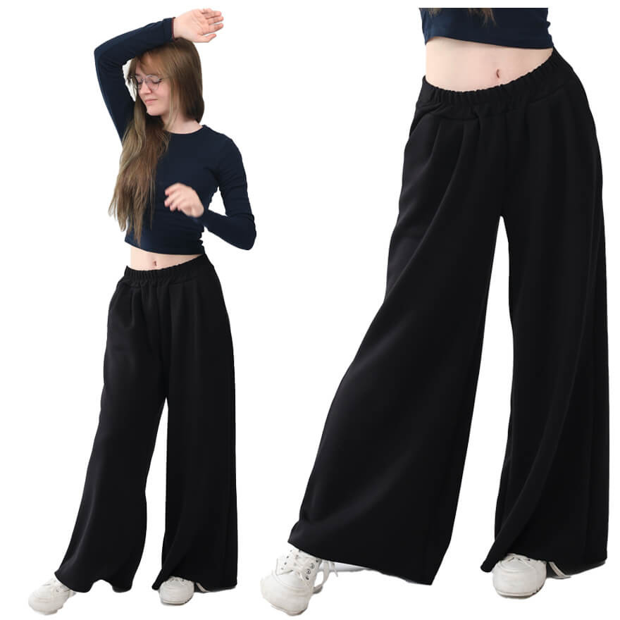 Dla każdej sylwetki - dzięki dopracowanemu krojowi doskonale leżą na każdej sylwetce, niezależnie od wieku czy budowy ciała. Szerokie nogawki pięknie równoważą proporcje, a miękka, lekko elastyczna tkanina dopasowuje się do ruchu i figury.