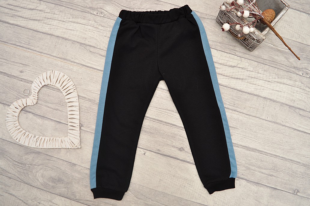 Dres chłopięcy 2-częściowy w skład którego wchodzą: czarne spodnie oraz bluza w kolorze pastelowego błękitu.