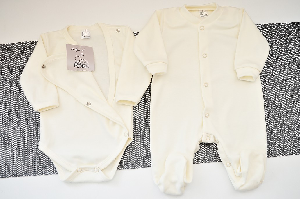 - Body z długim rękawem o kroju kopertowym. Body jest zapinane na dwie pary bezniklowych napek po bokach oraz dwie napki w kroku co znacznie ułatwia zakładanie ubranka
