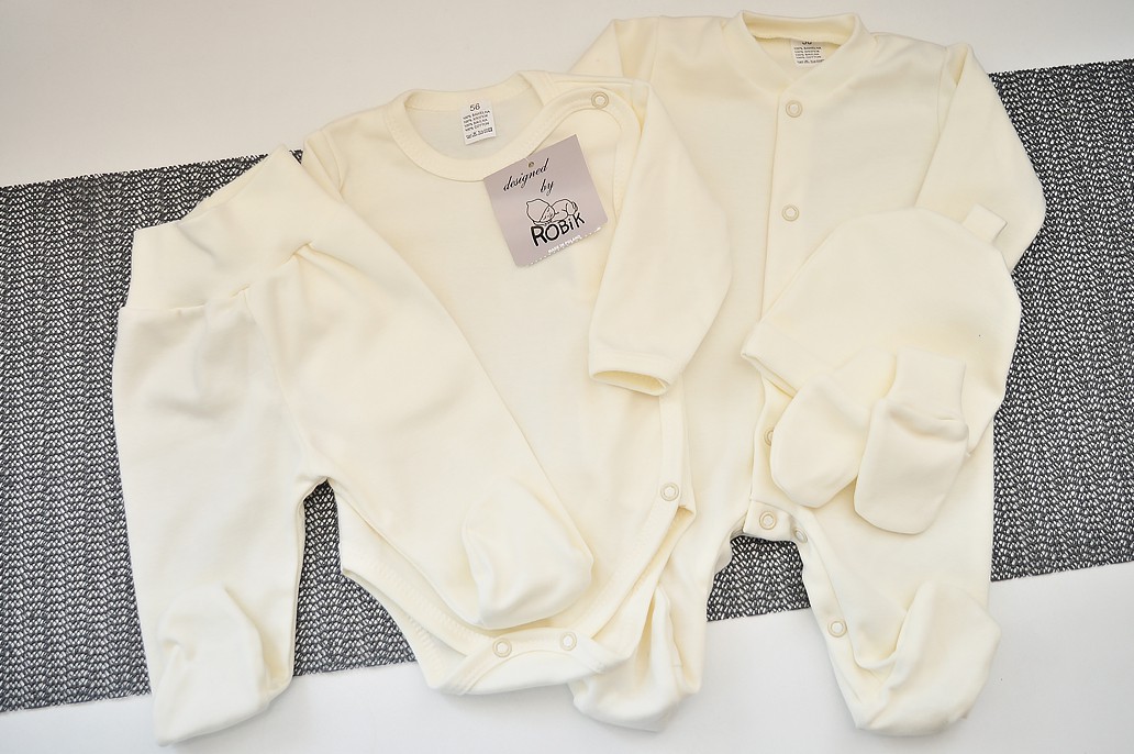Niezbędna do szpitala wyprawka dla noworodka 5 - częściowa z polskiej bawełny. W skład kompletu wchodzą: