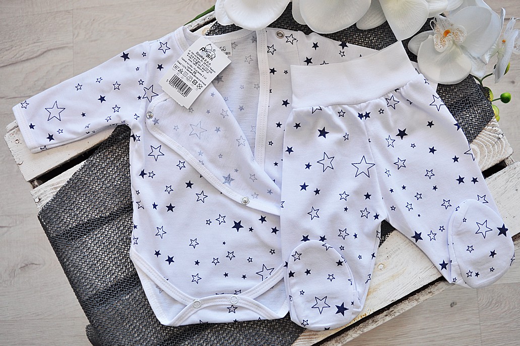 Komplet 2cz body kopertowe półśpiochy biały w granatowe gwiazdki r.50 WCZEŚNIAK