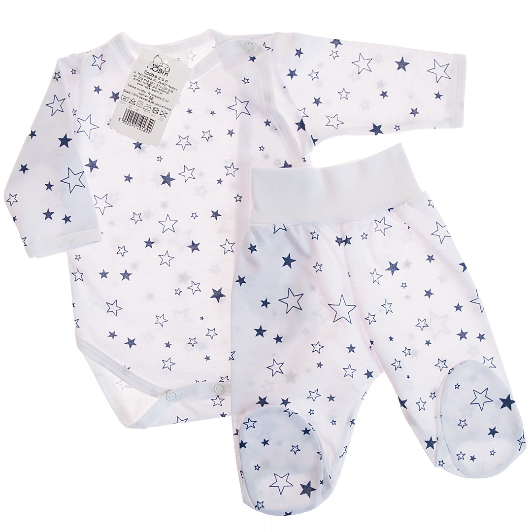 Biały komplet dla wcześniaka 2-częściowy w gwiazdki - body kopertowe, półśpiochy.