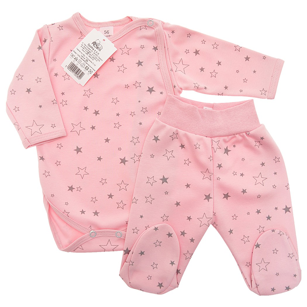 Komplet 2cz body kopertowe półśpiochy, pudrowy w gwiazdki r.50 WCZEŚNIAK