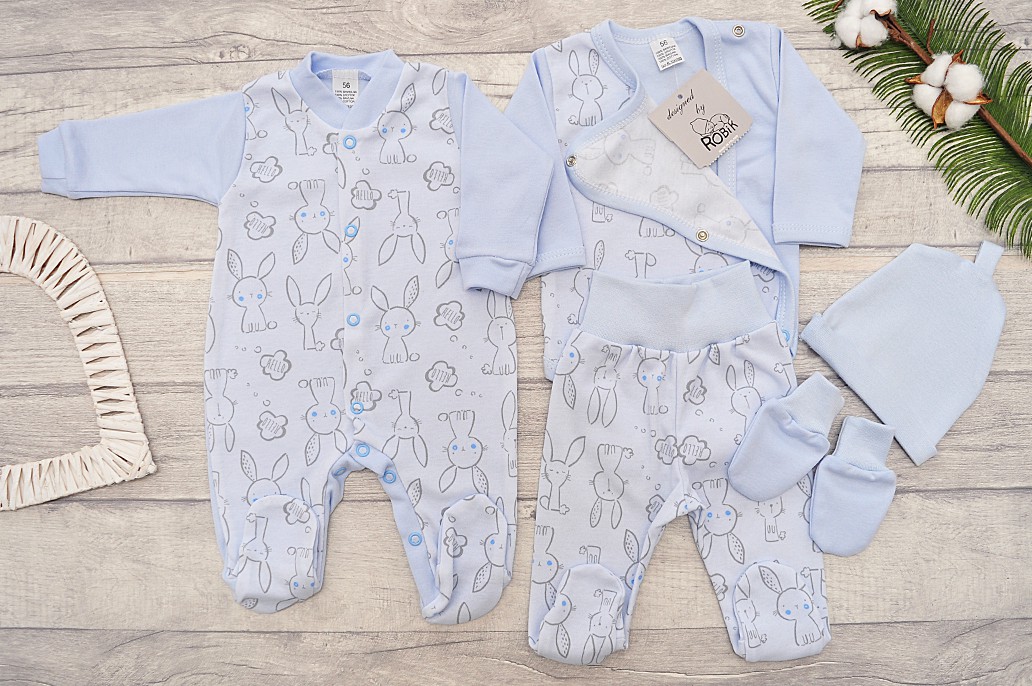 WYPRAWKA dla wcześniaka do szpitala 5 części niebieska w króliki wzór 220N