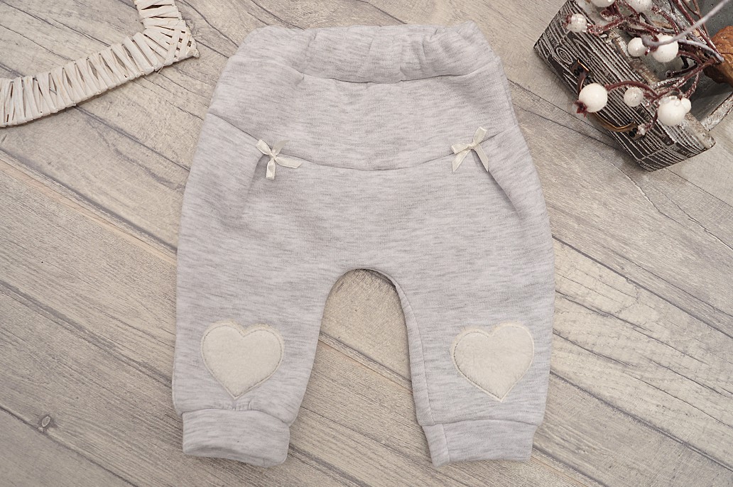Spodenki dresowe ocieplane posiadają elastyczną gumkę w pasie, na wysokości bioder zostały umieszczone małe, białe kokardki a na nogawkach znajdują się futerkowe serca. Spodenki dziewczęce uszyte z miękkiej, elastycznej dzianiny dresowej wykończonej od wewnątrz efektem miękkiego meszku.