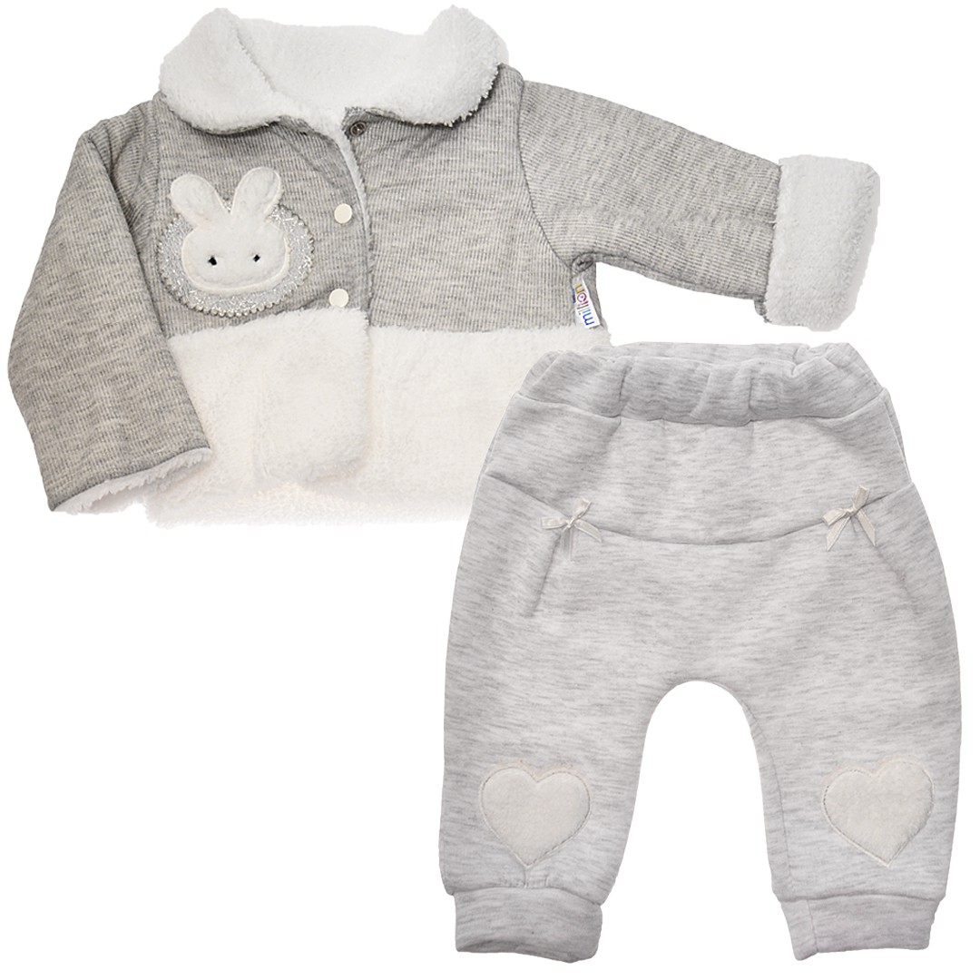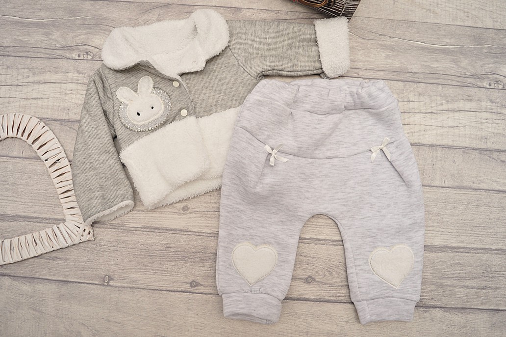Szary komplet 2cz. dla niemowlaka bluza na futerku, ocieplane spodnie