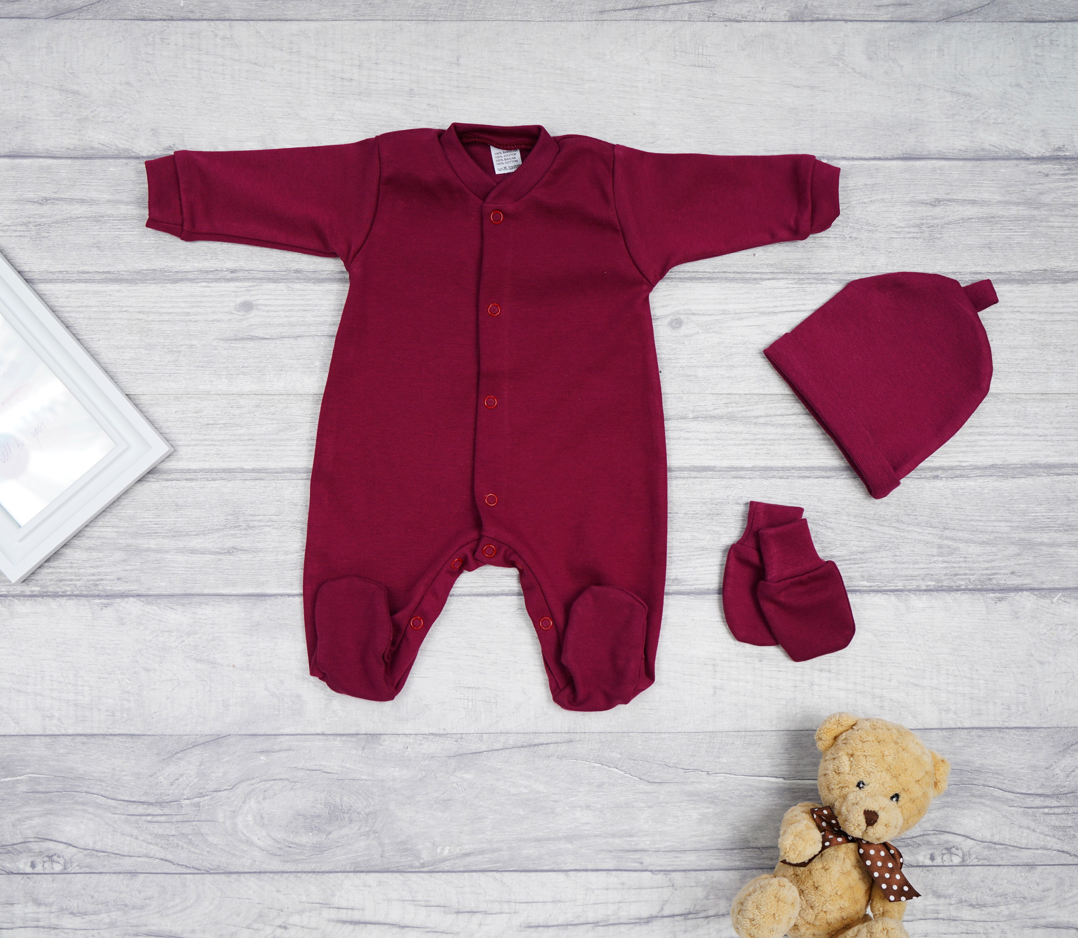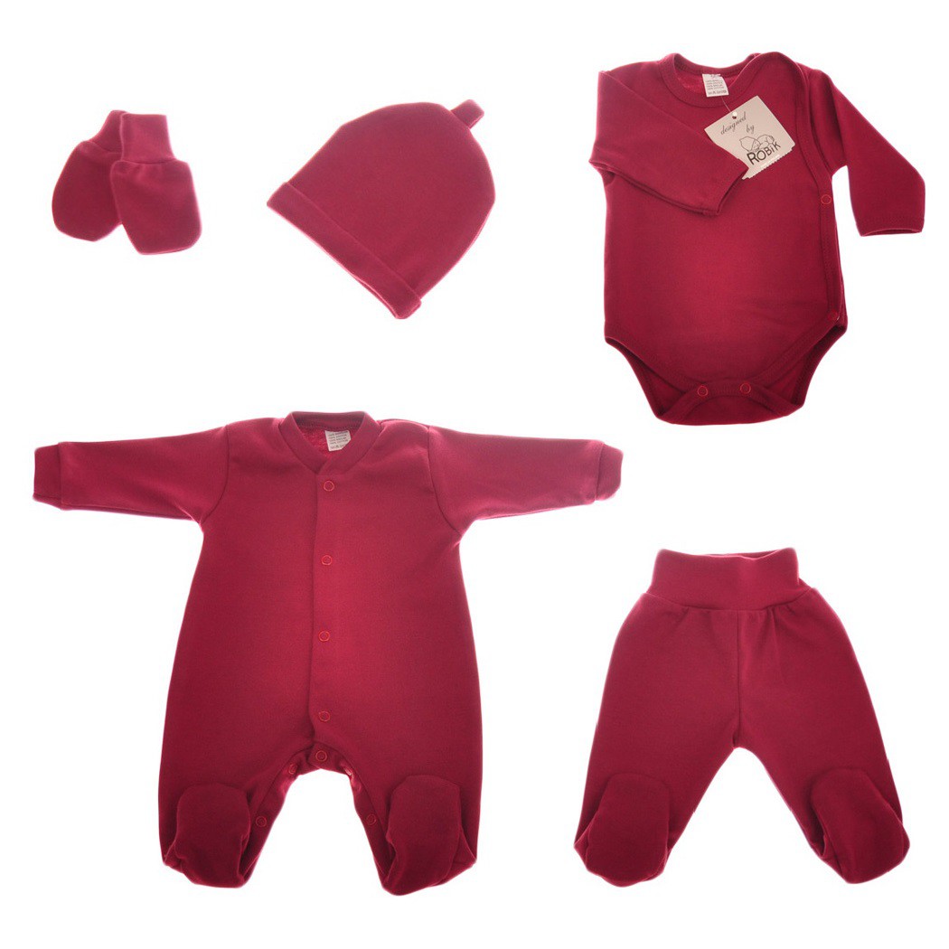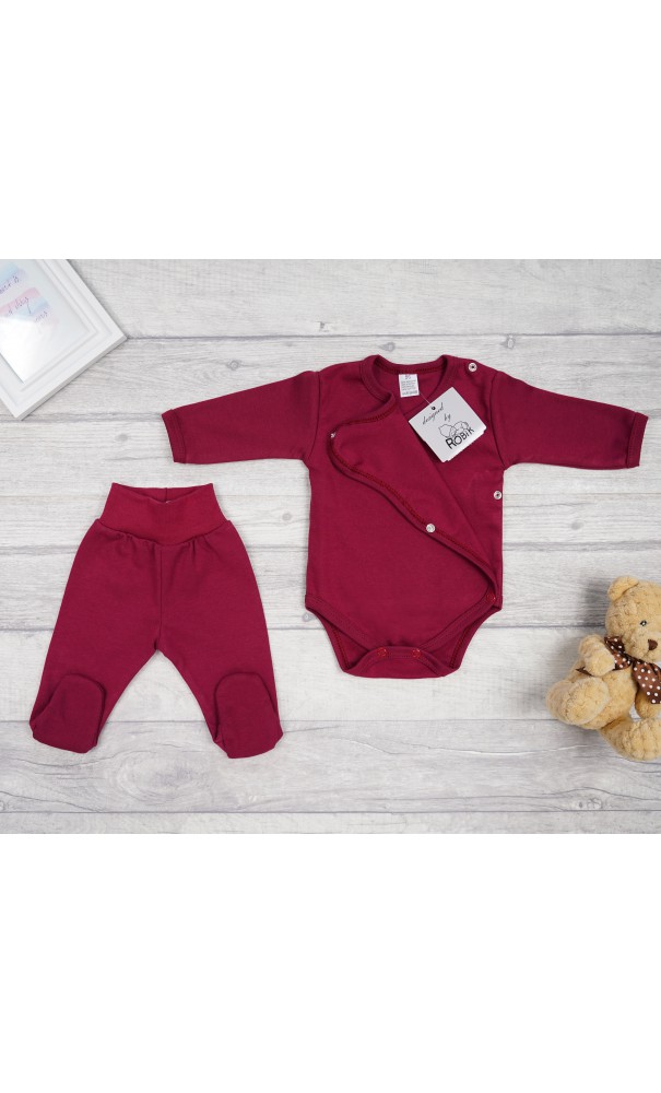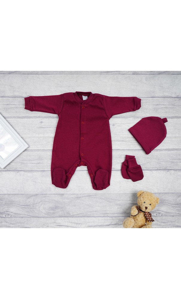 Niezbędna do szpitala bordowa wyprawka dla noworodka do szpitala 5 - częściowa z polskiej bawełny. W skład kompletu wchodzą: