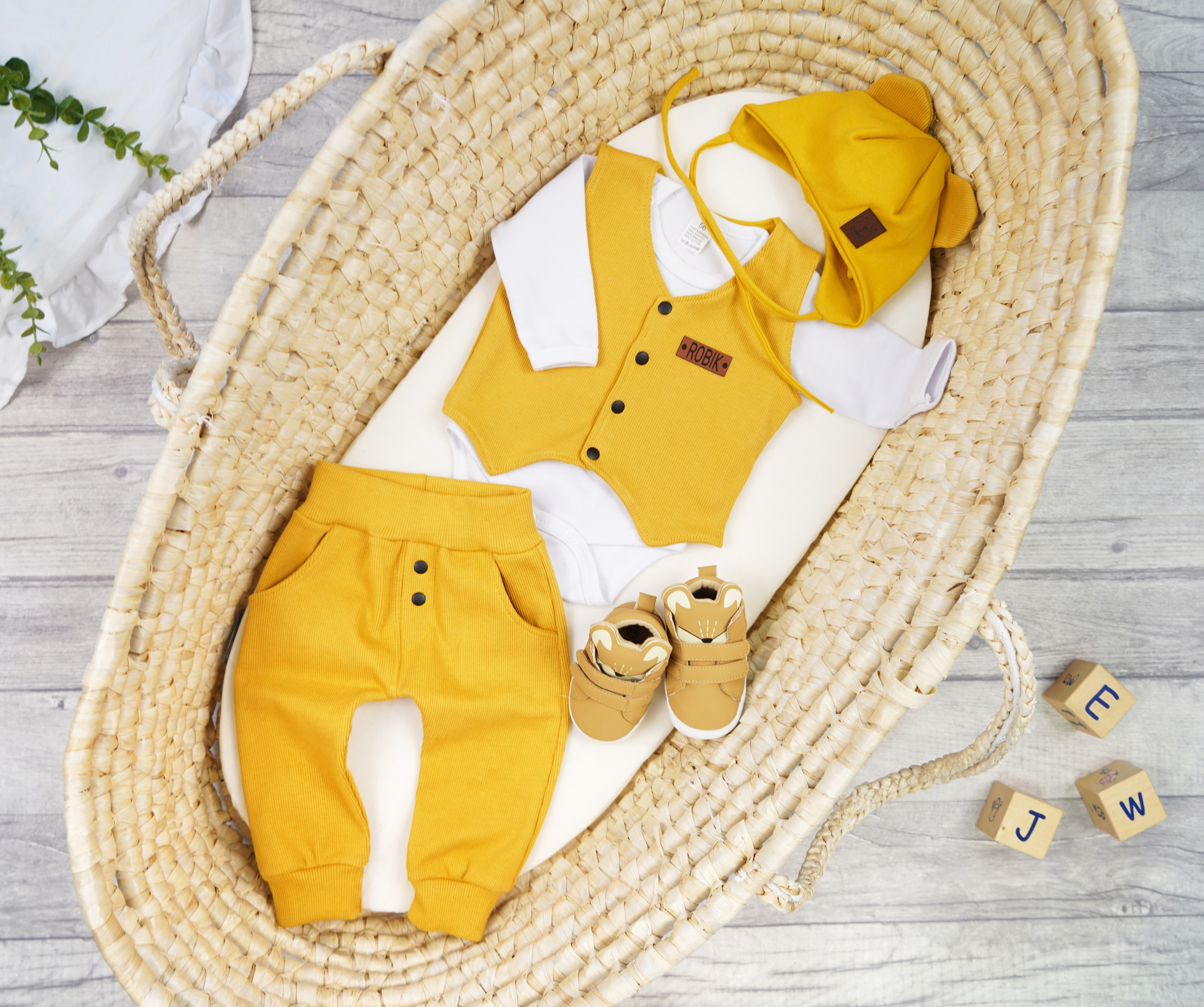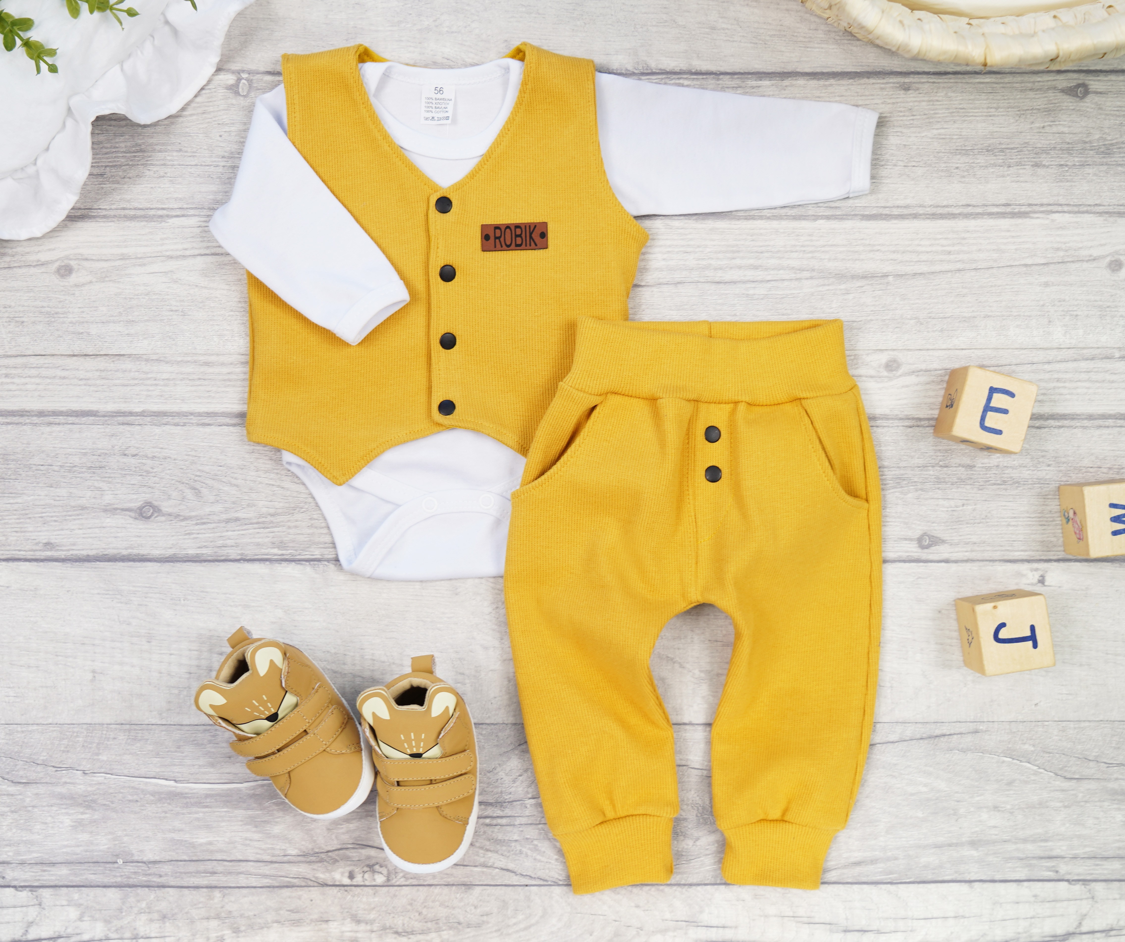 Miodowy komplet Gentleman dla niemowlaka: kamizelka + spodnie