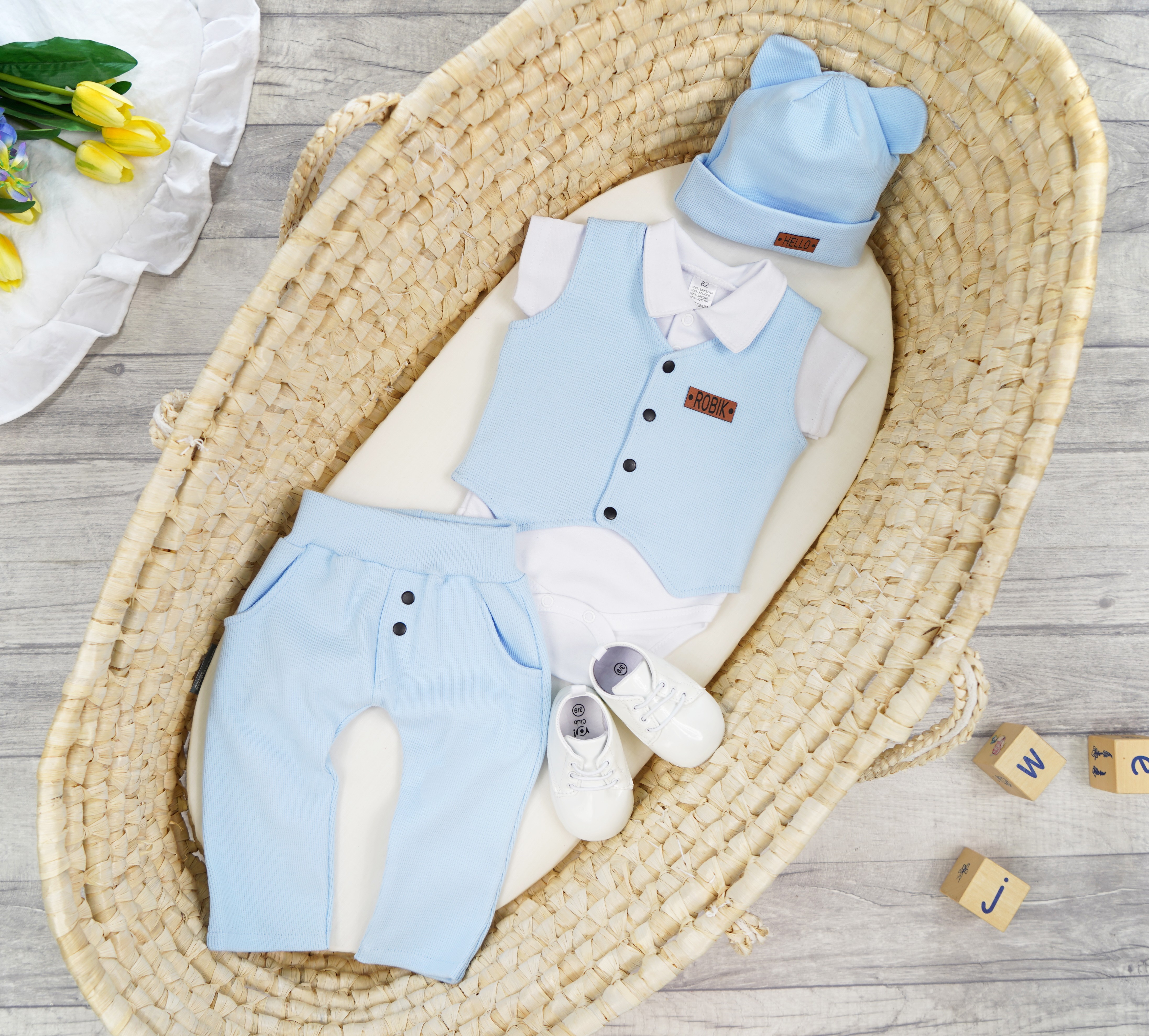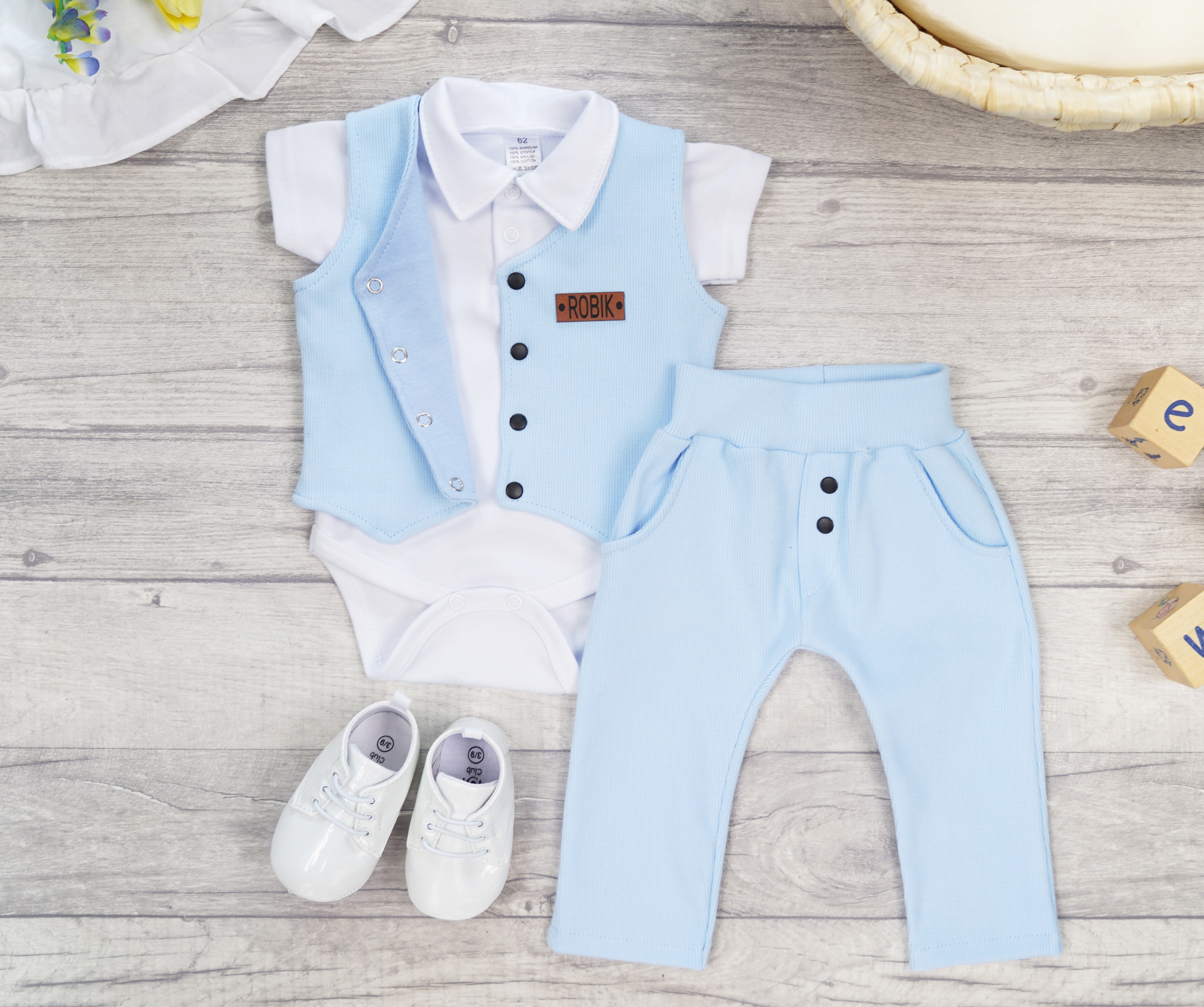 Komplet Gentleman dla niemowlaka: kamizelka + spodnie w kolorze błękitnym